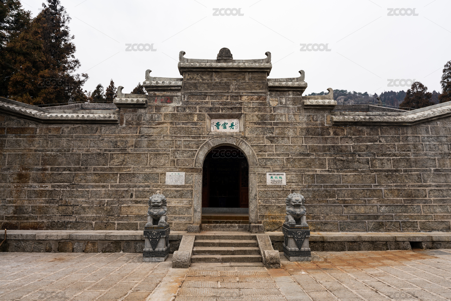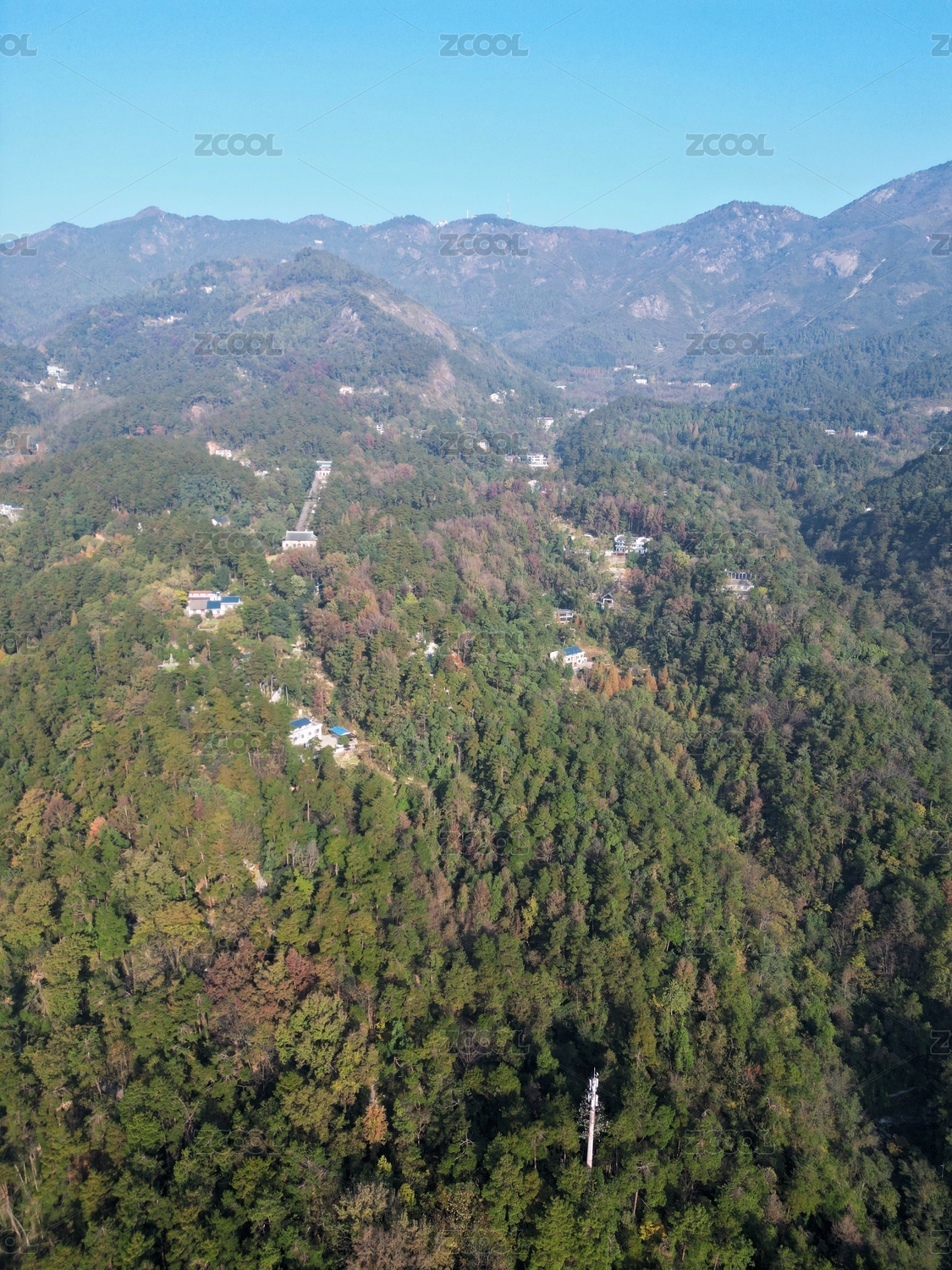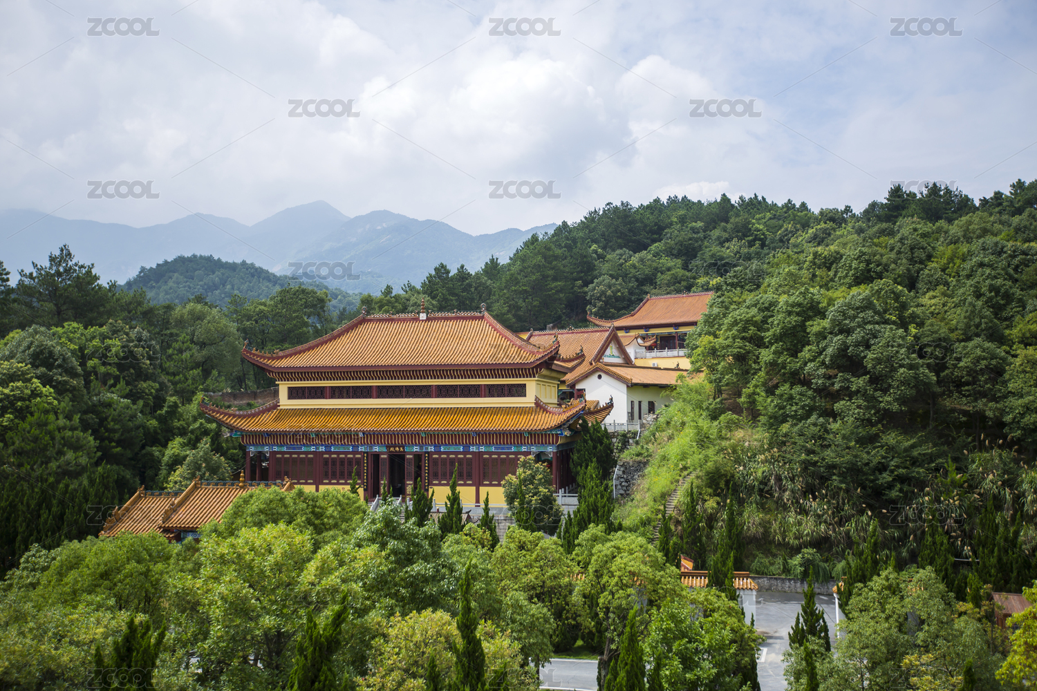 五岳衡山在大山深处的佛家庙宇园林建筑群风光