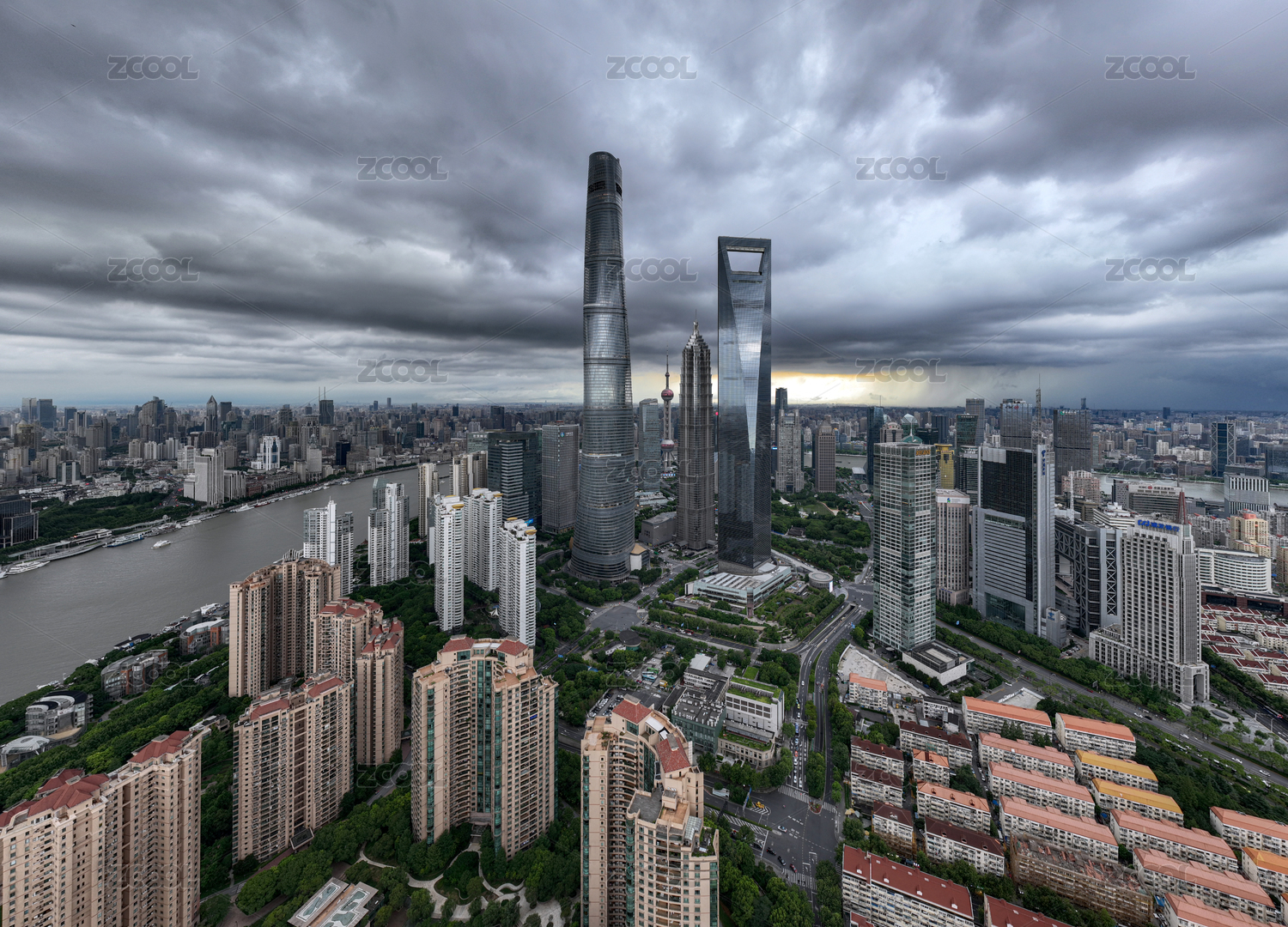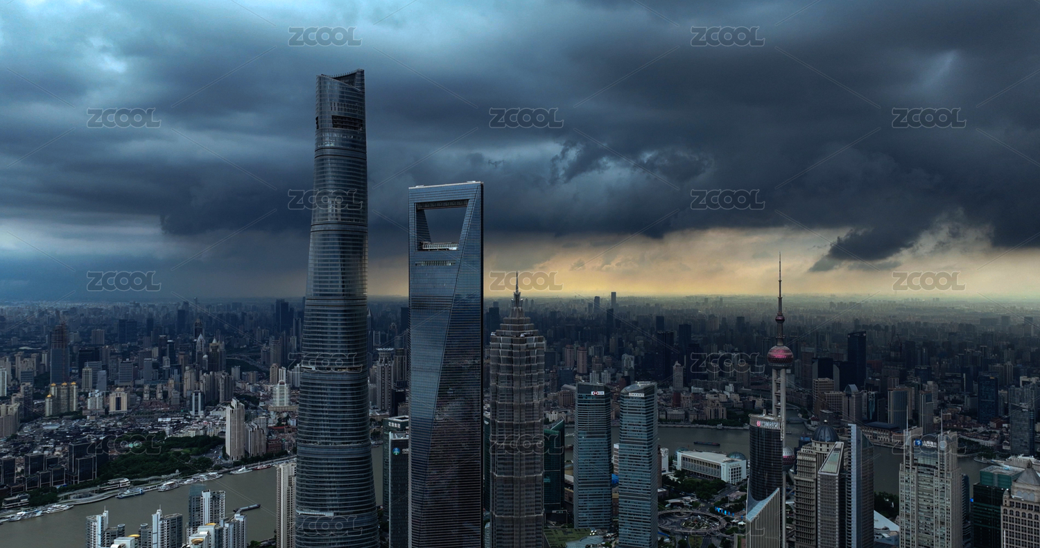 中国上海陆家嘴城市风暴航拍