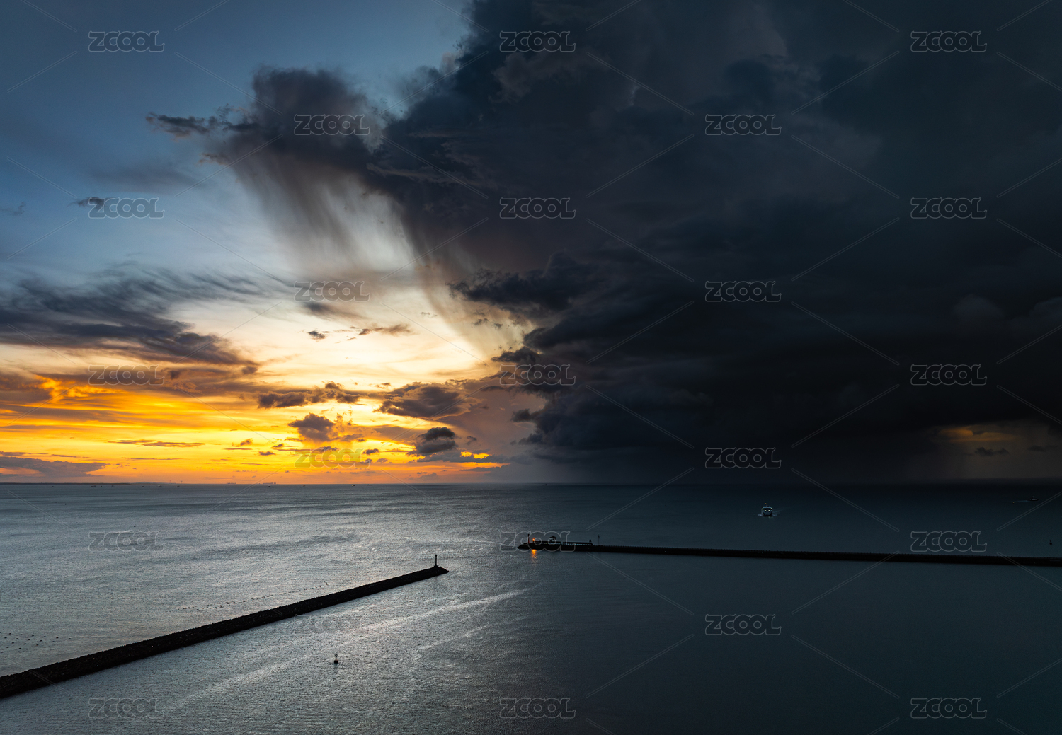 风暴下的日出和船只