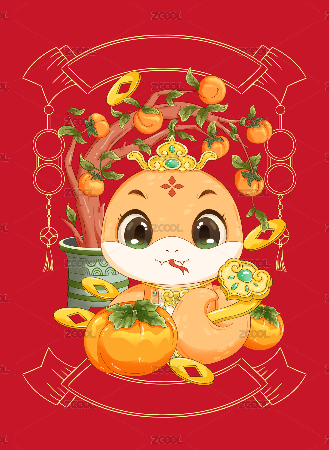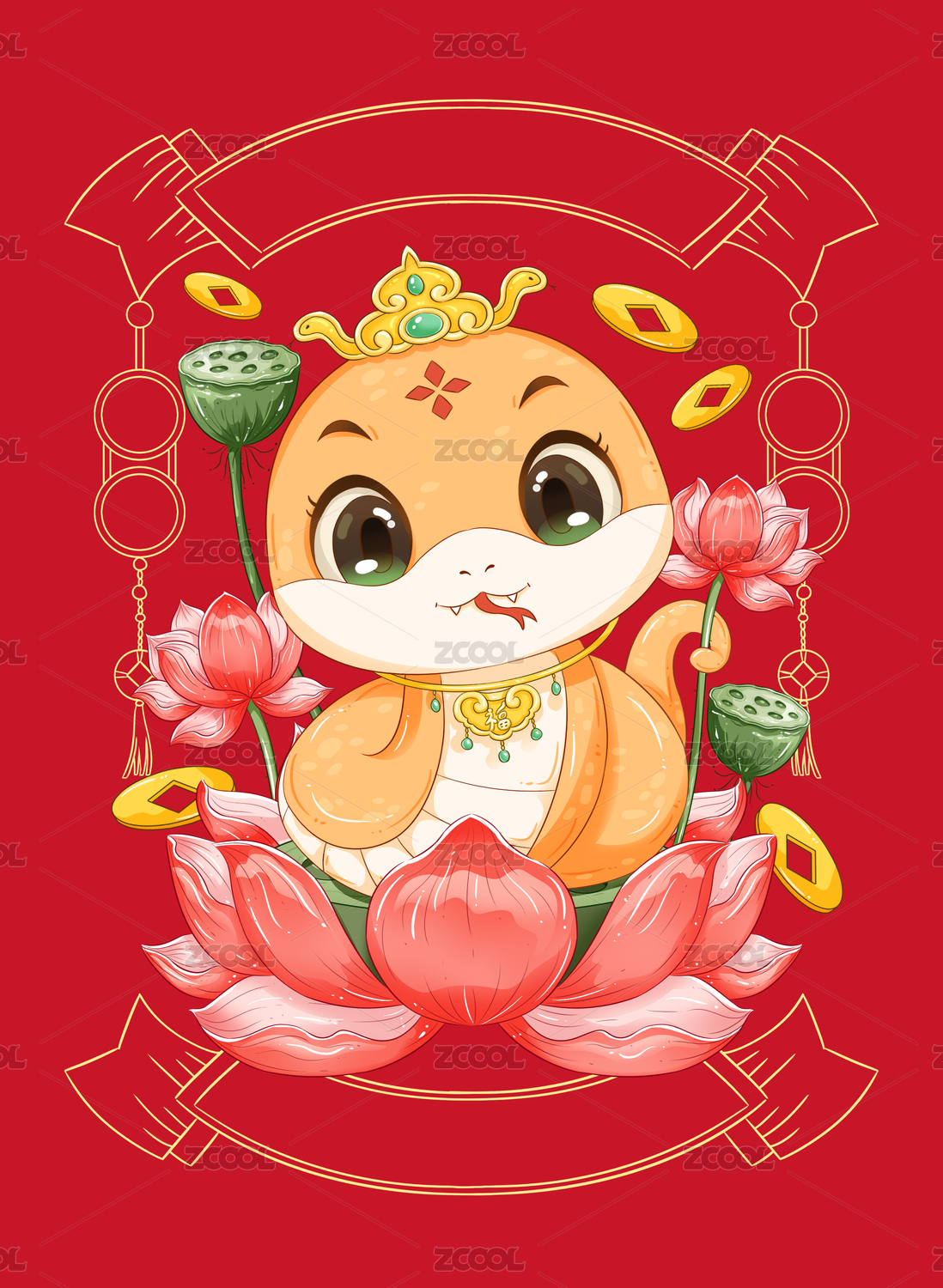 蛇年福娃门贴