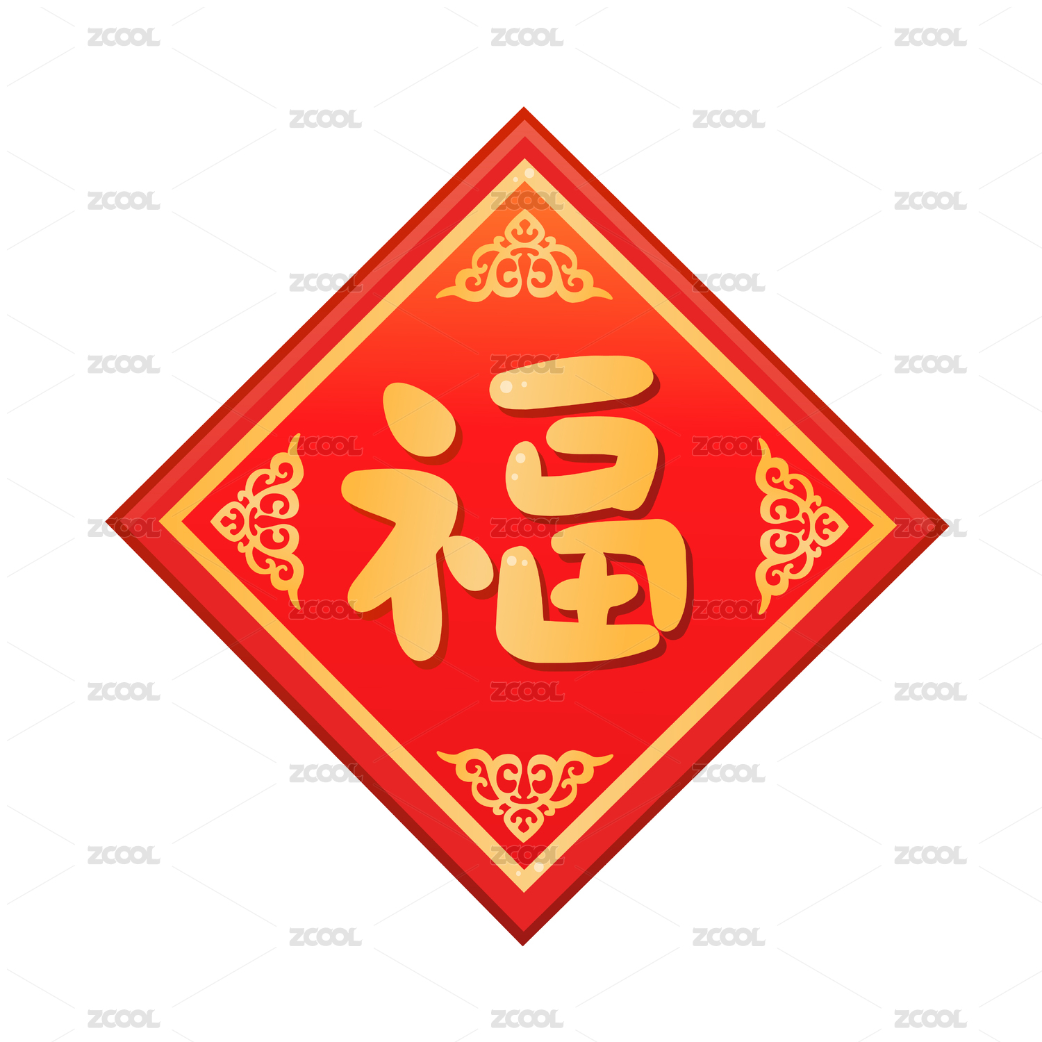 手写手绘汉字福字艺术字门贴矢量插画