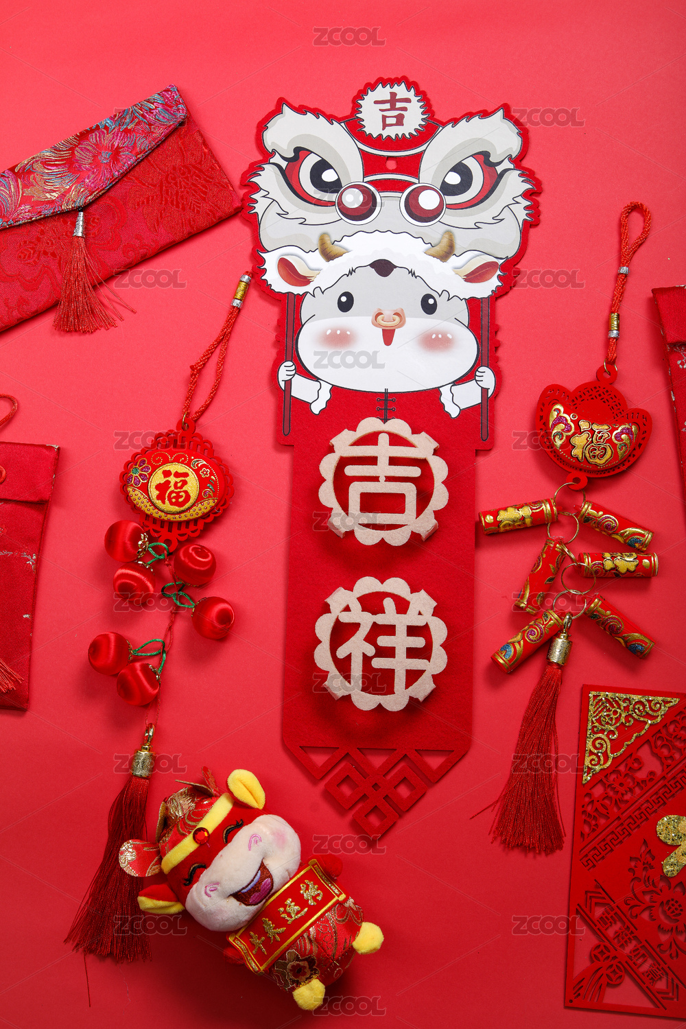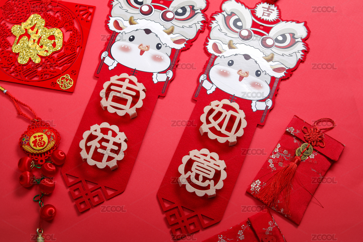 新年吉祥如意的门贴背景