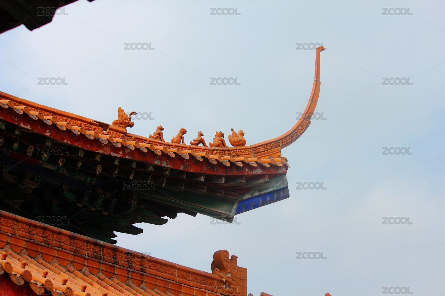明清古代宫殿屋檐特写