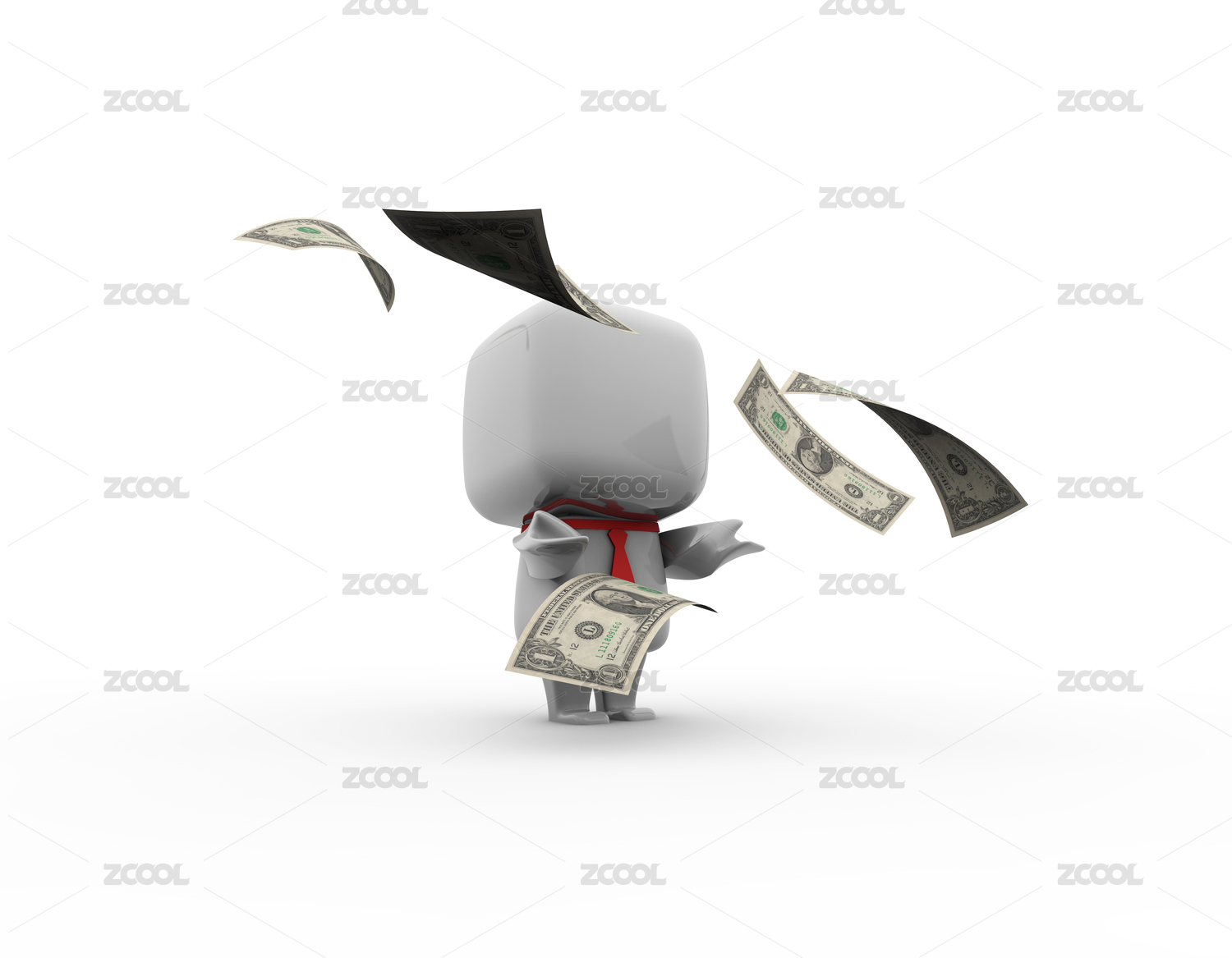 被钞票包围的商务小白人,年终奖金