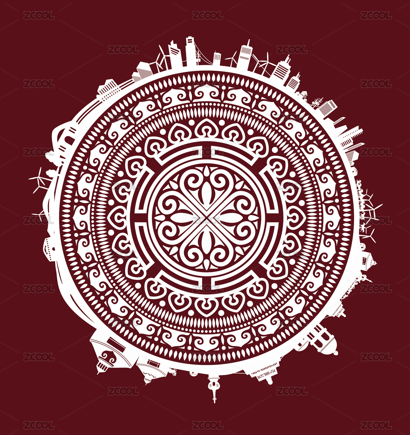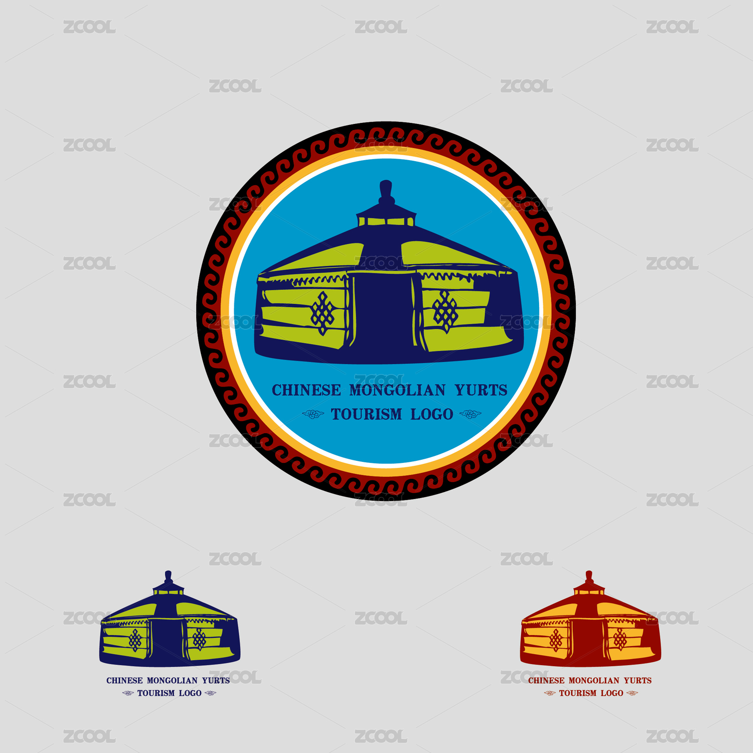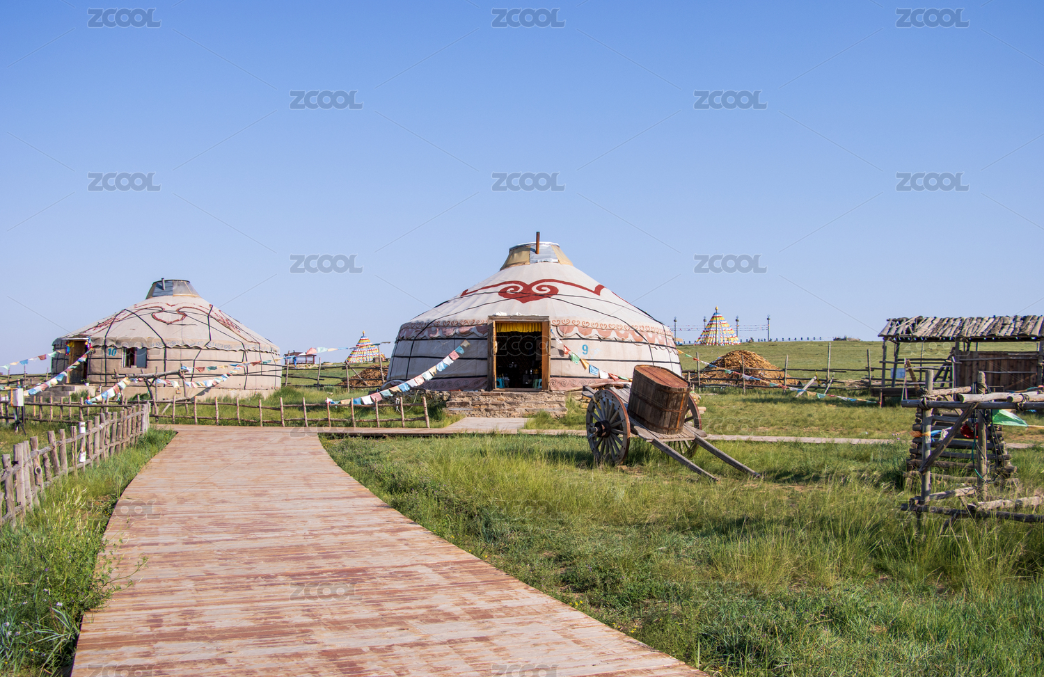 中国内蒙呼伦贝特大草原上蒙古包内部七彩条装饰