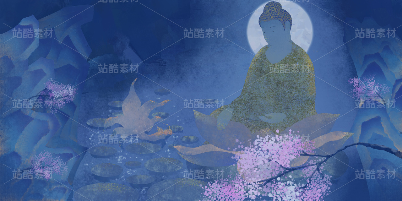 中国风插画释迦摩尼如来佛像佛教