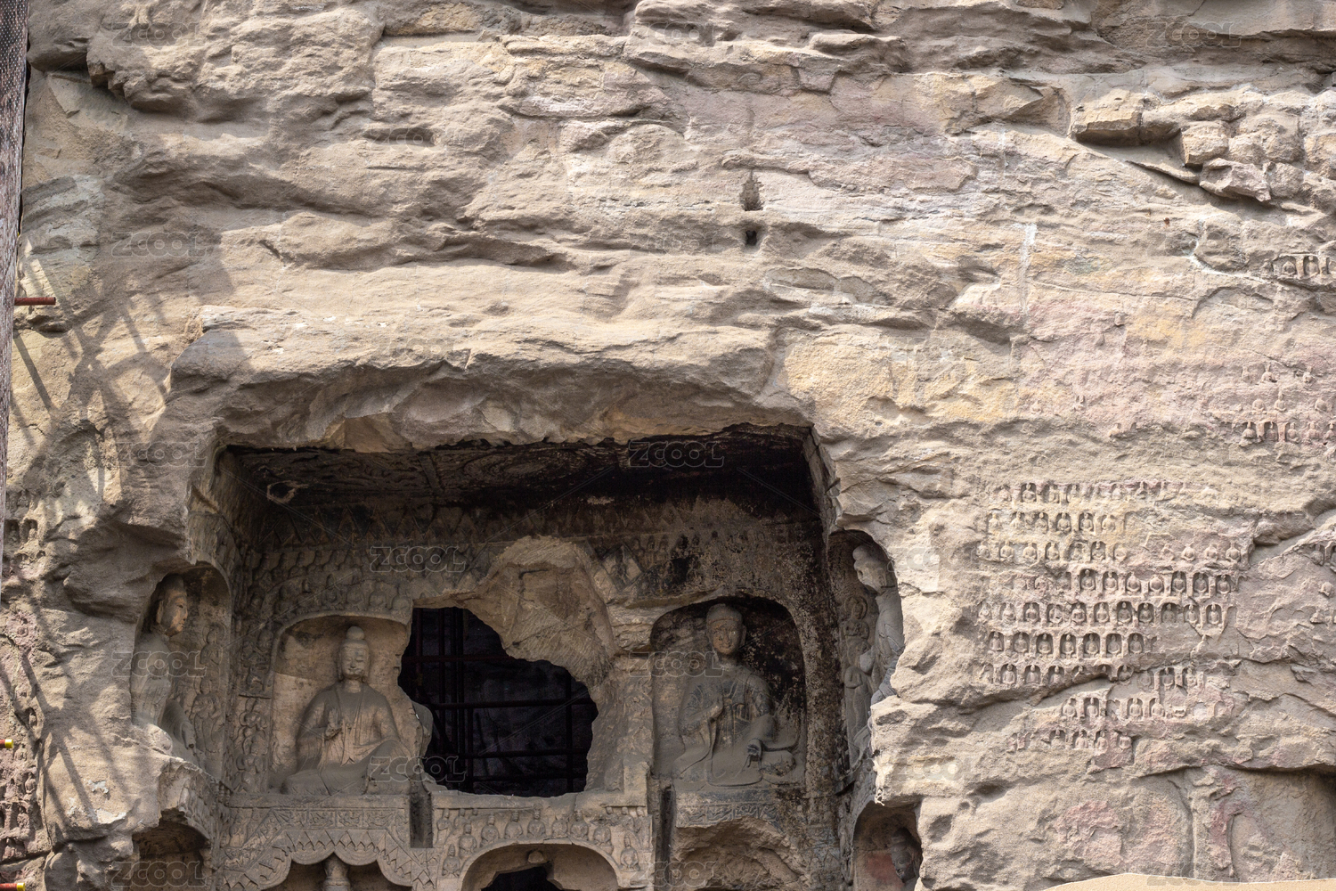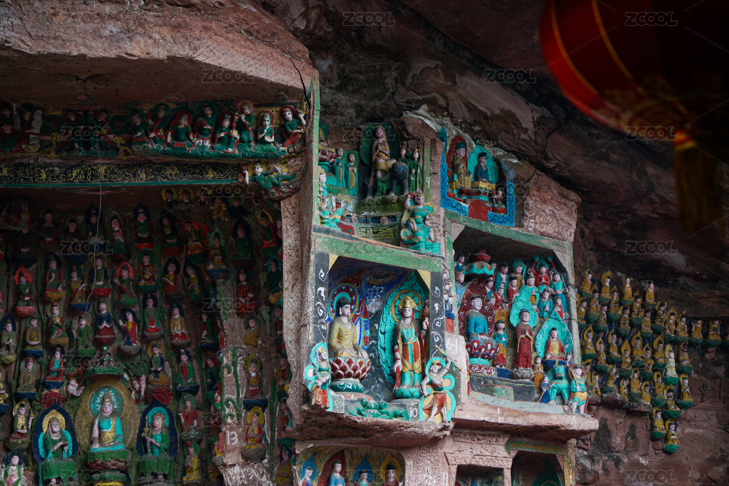 中国成都大邑药师岩悬崖上的佛像崖刻