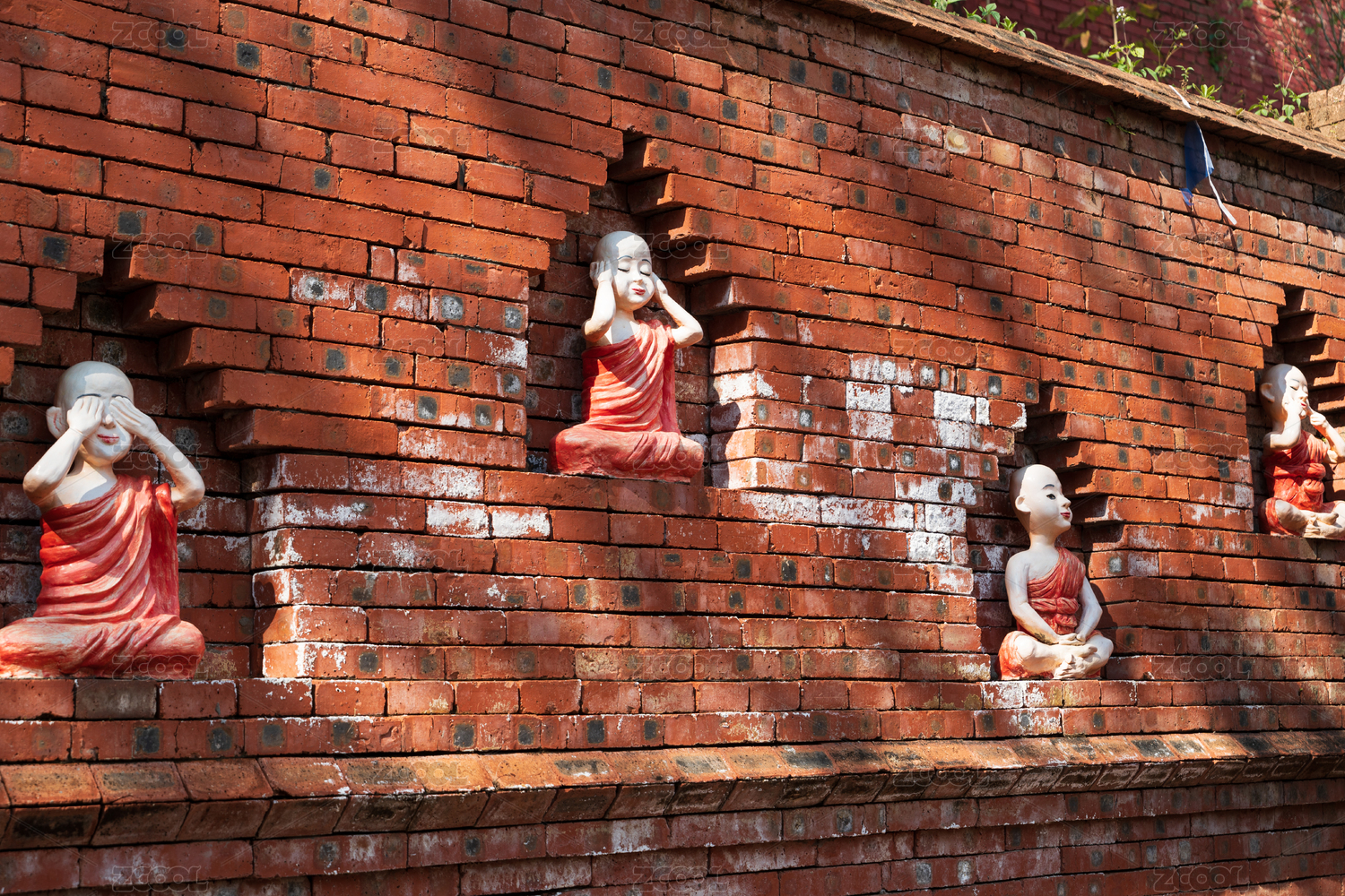 红砖墙上的小和尚佛像