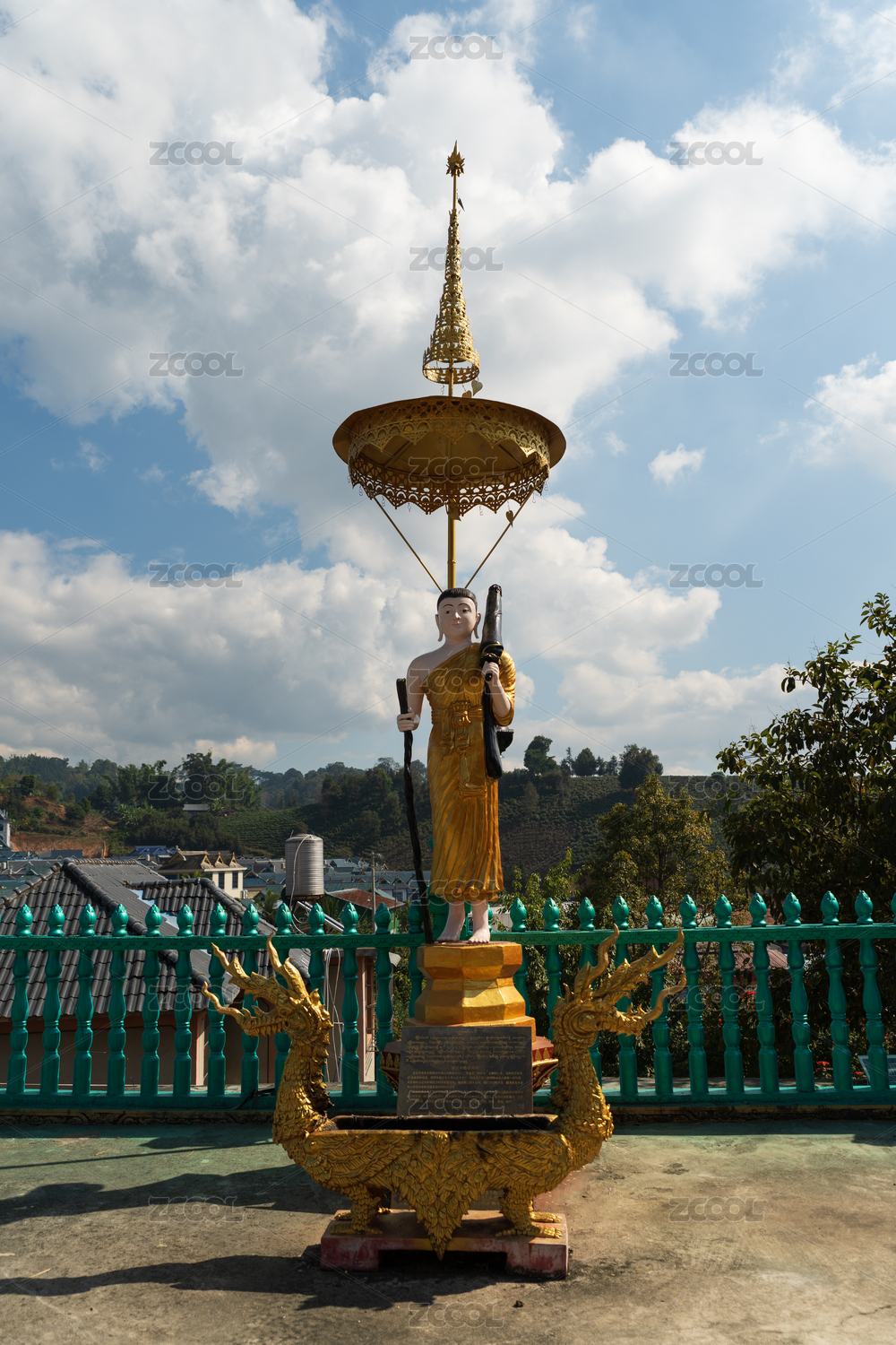 金色佛像与蓝天白云