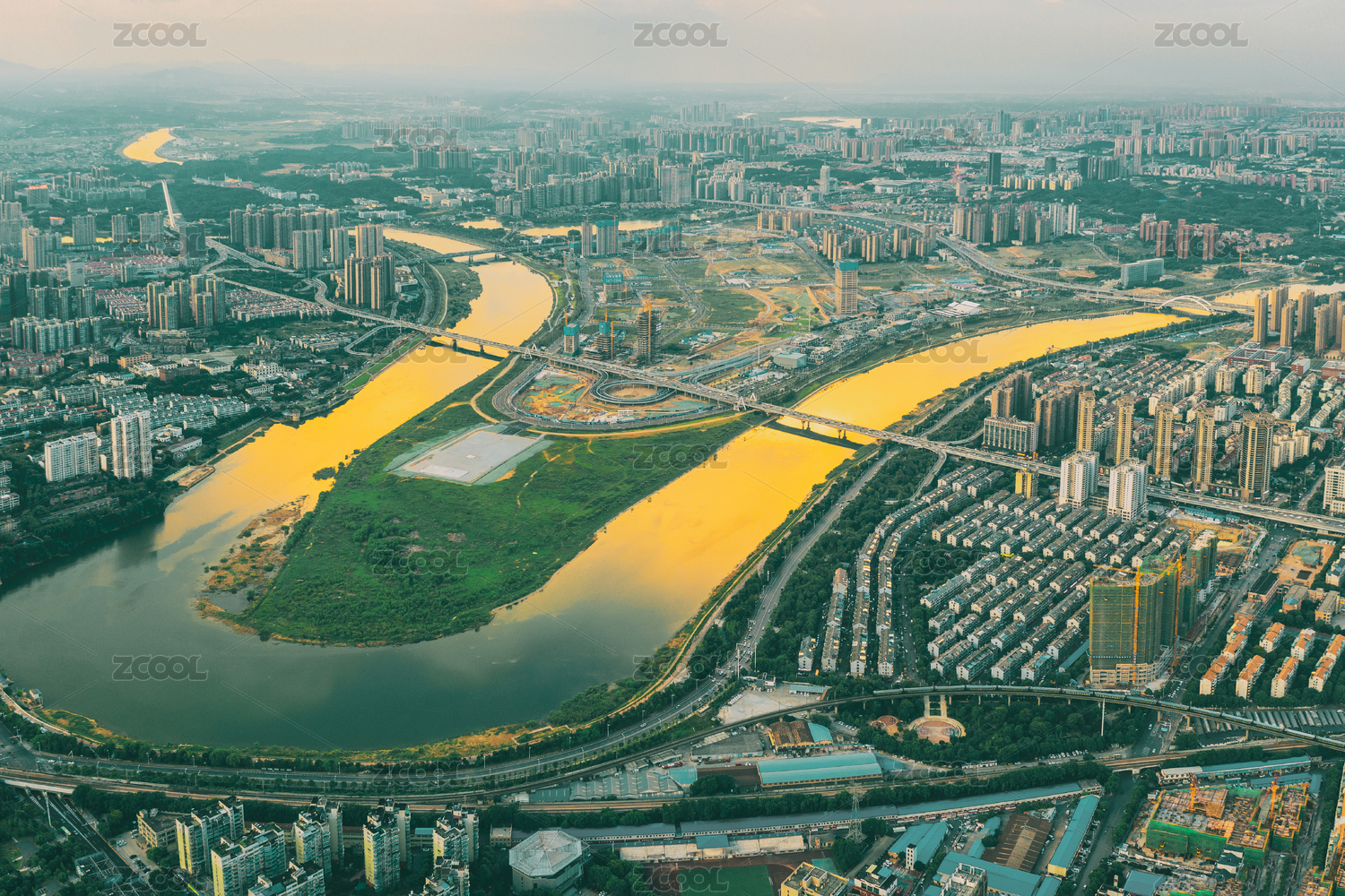 中国马栏山浏阳河落日航拍