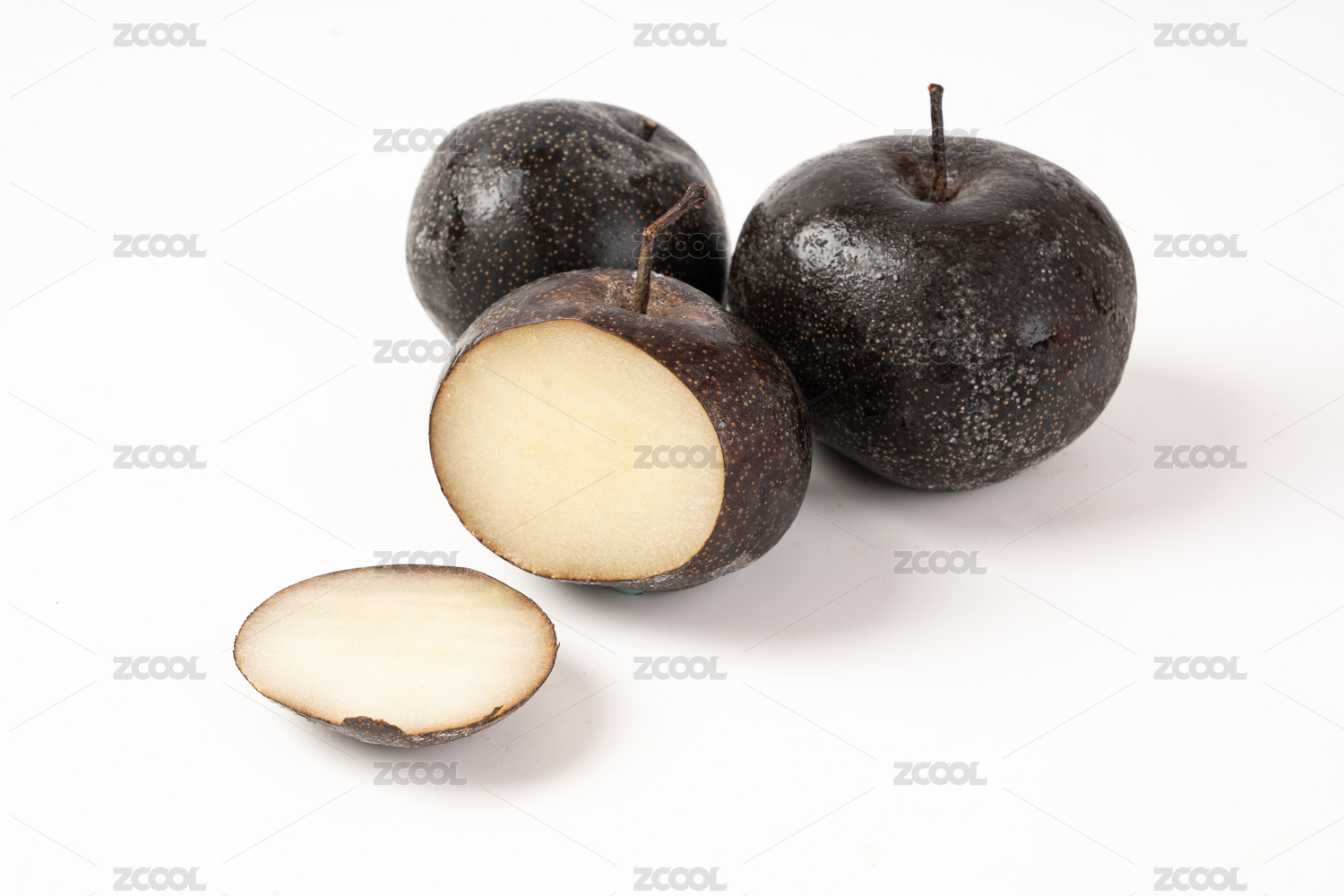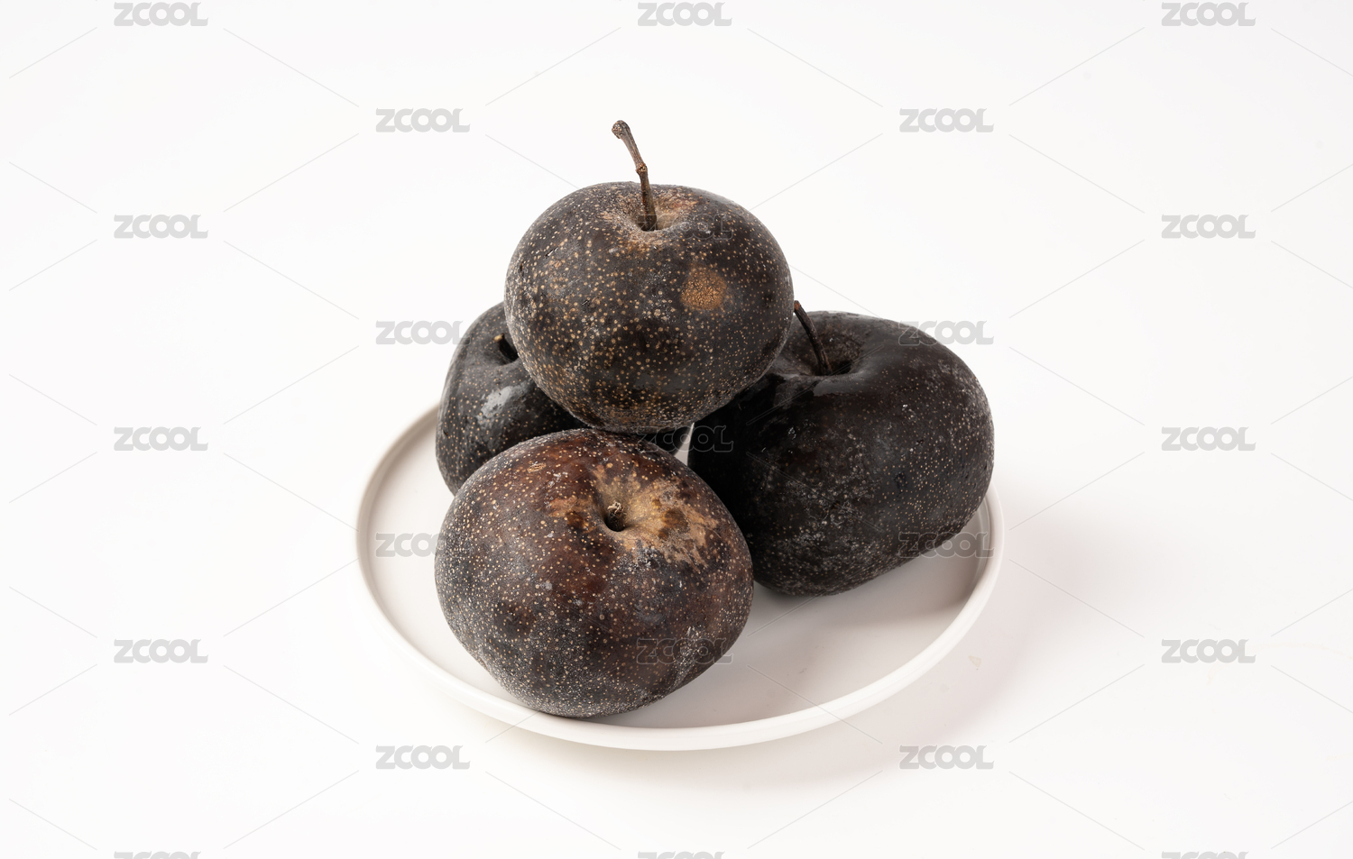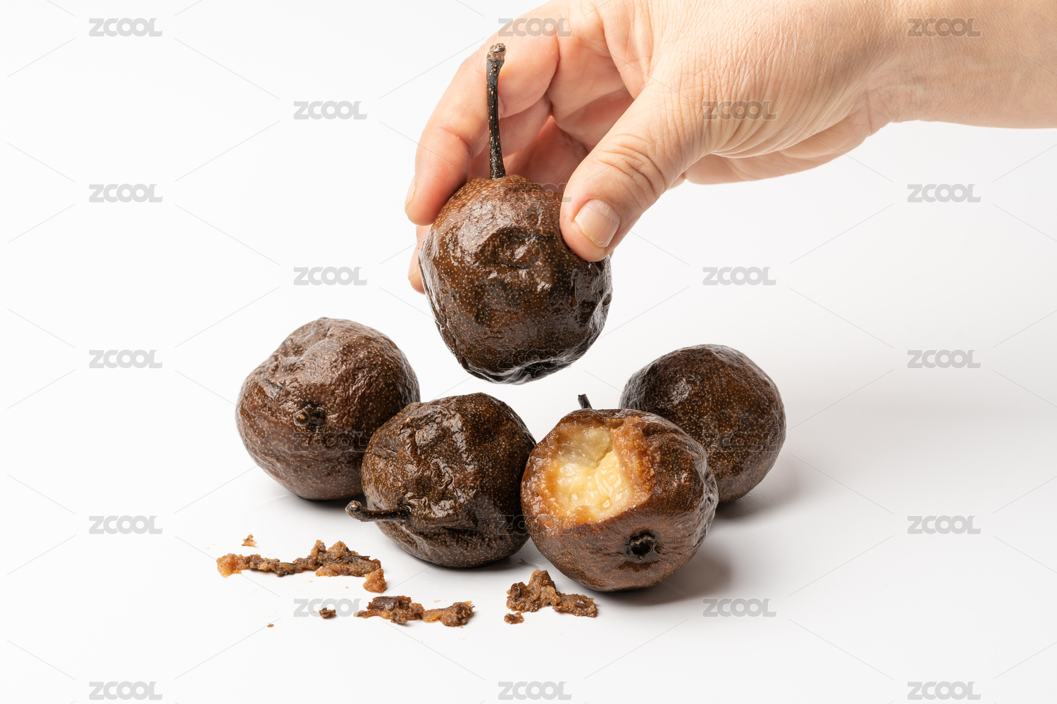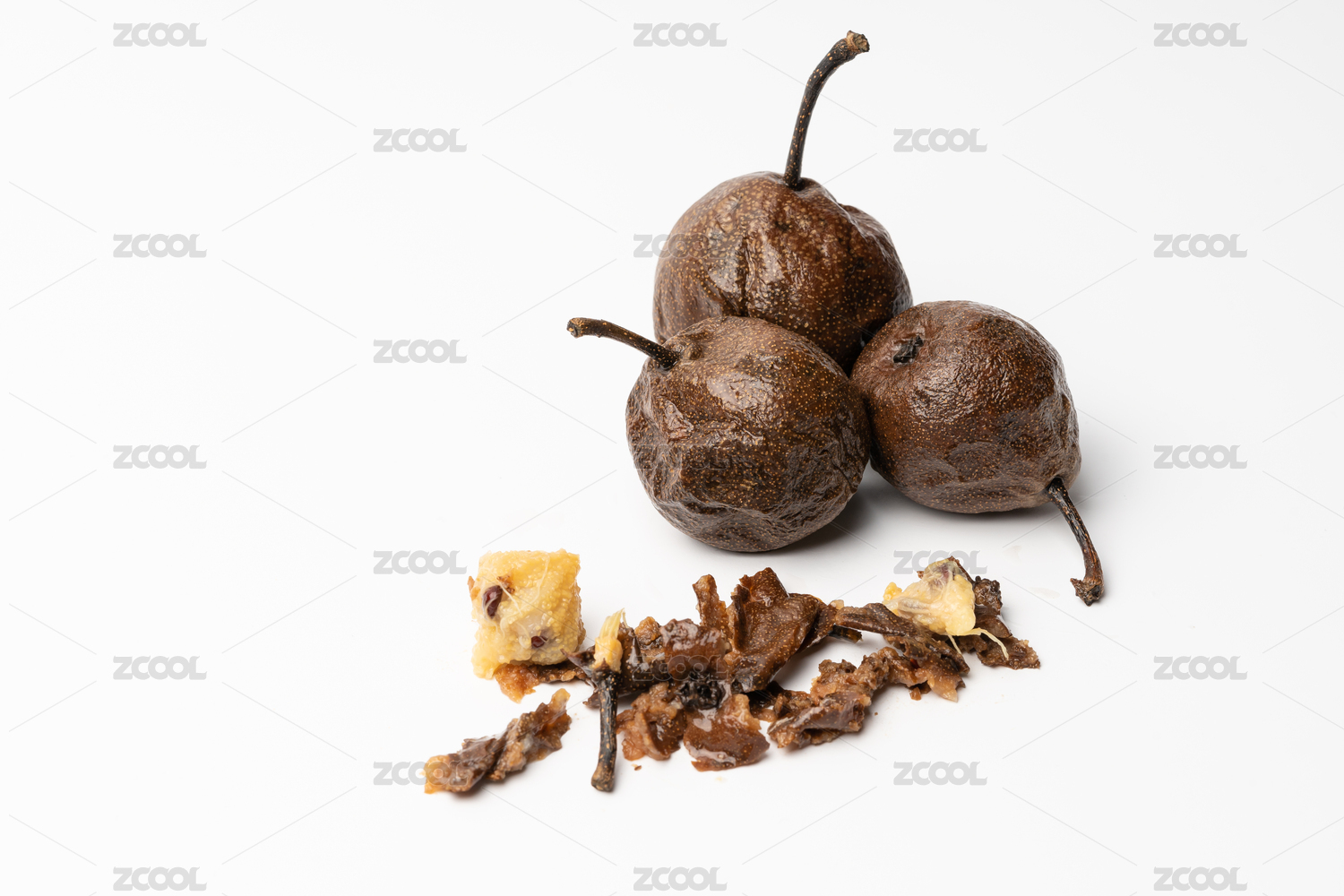 纯白色背景下的冬季东北特色水果冻梨