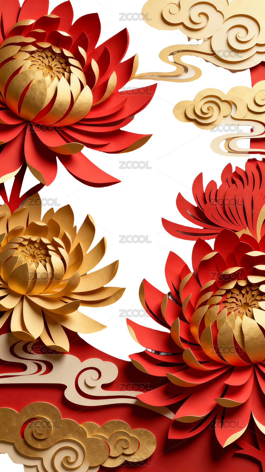 纸雕风格重阳节菊花免扣素材