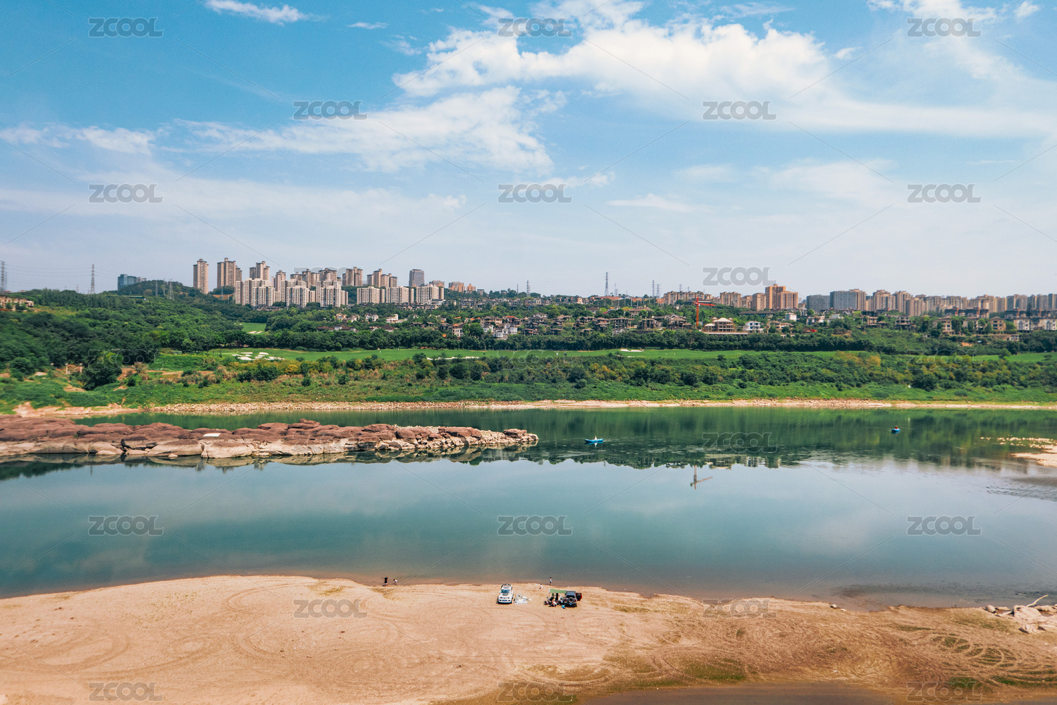 重庆人在江滩上露营,对面是佰富高尔夫球场