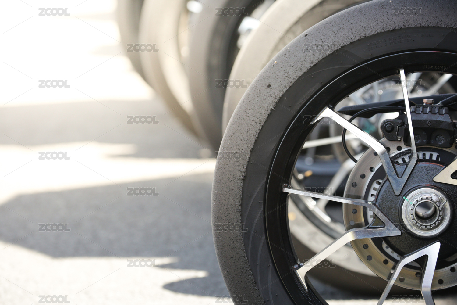 摩托车轮胎和轮毂的特写镜头