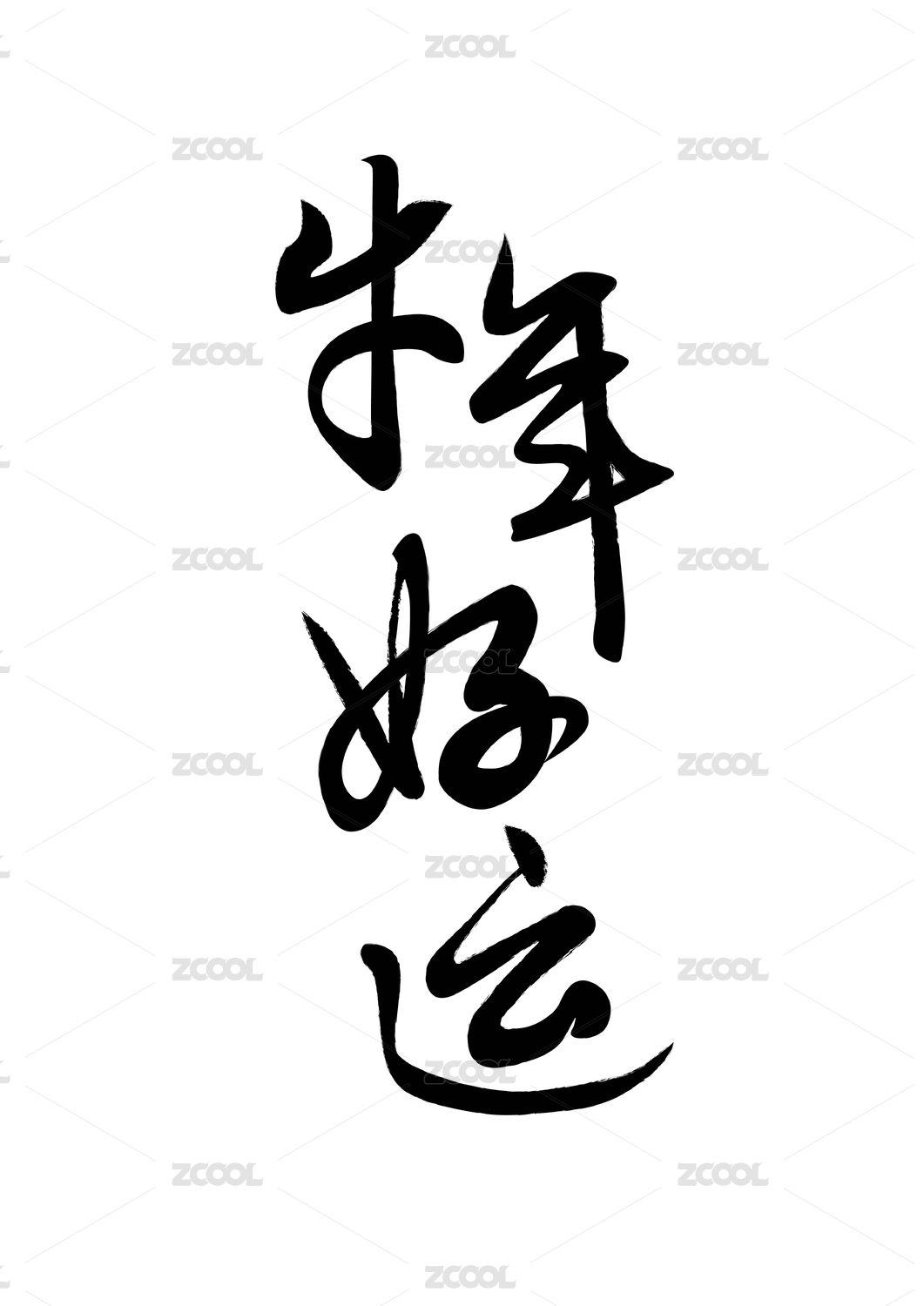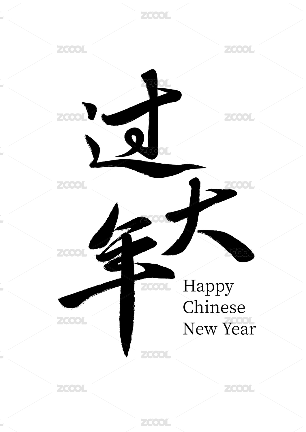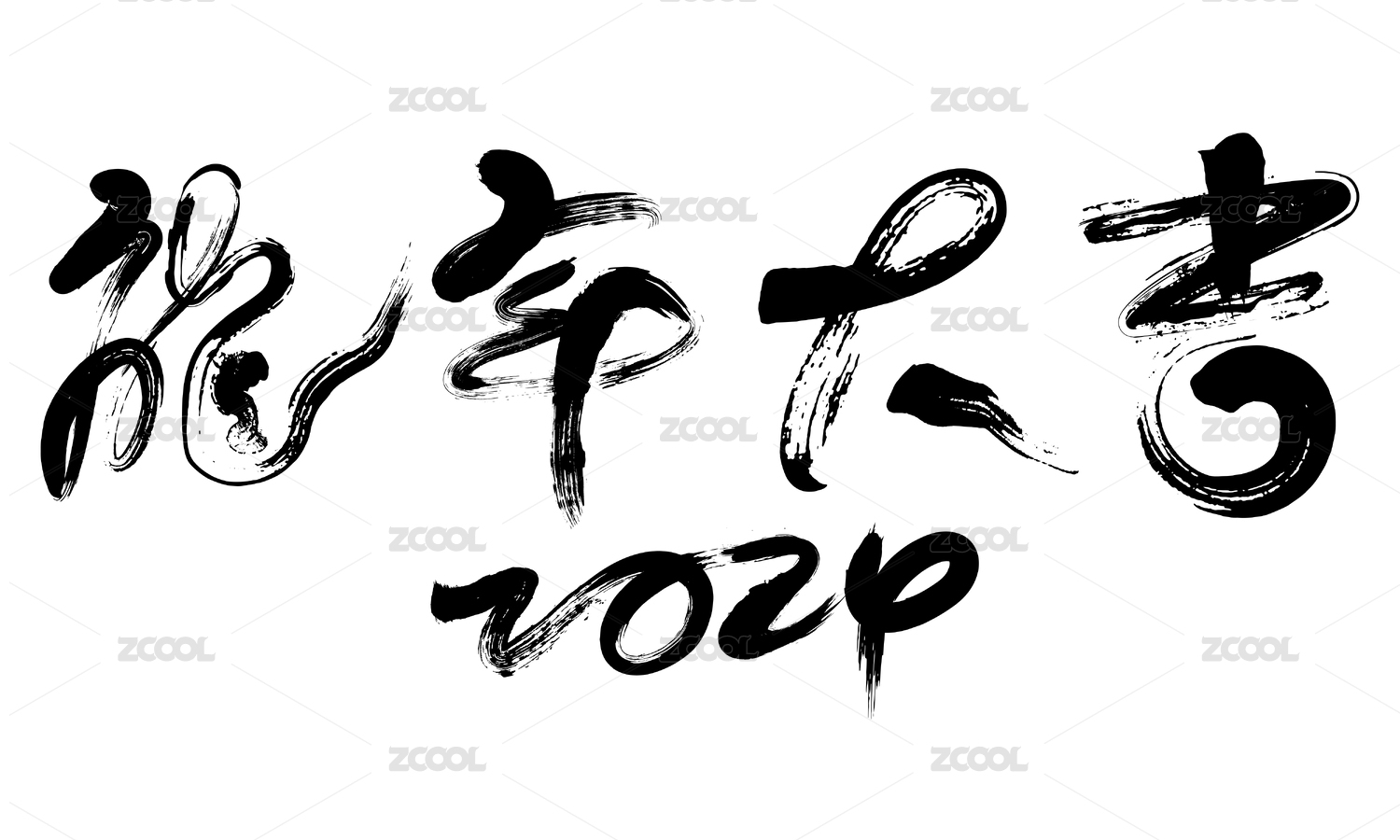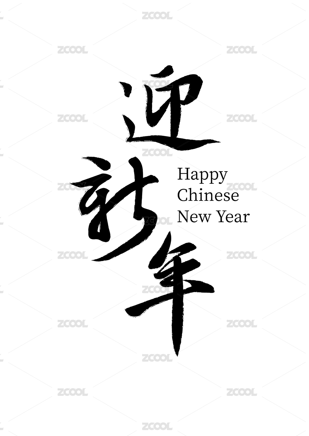 新年快乐国风虎年春节草书书法字体竖幅白底