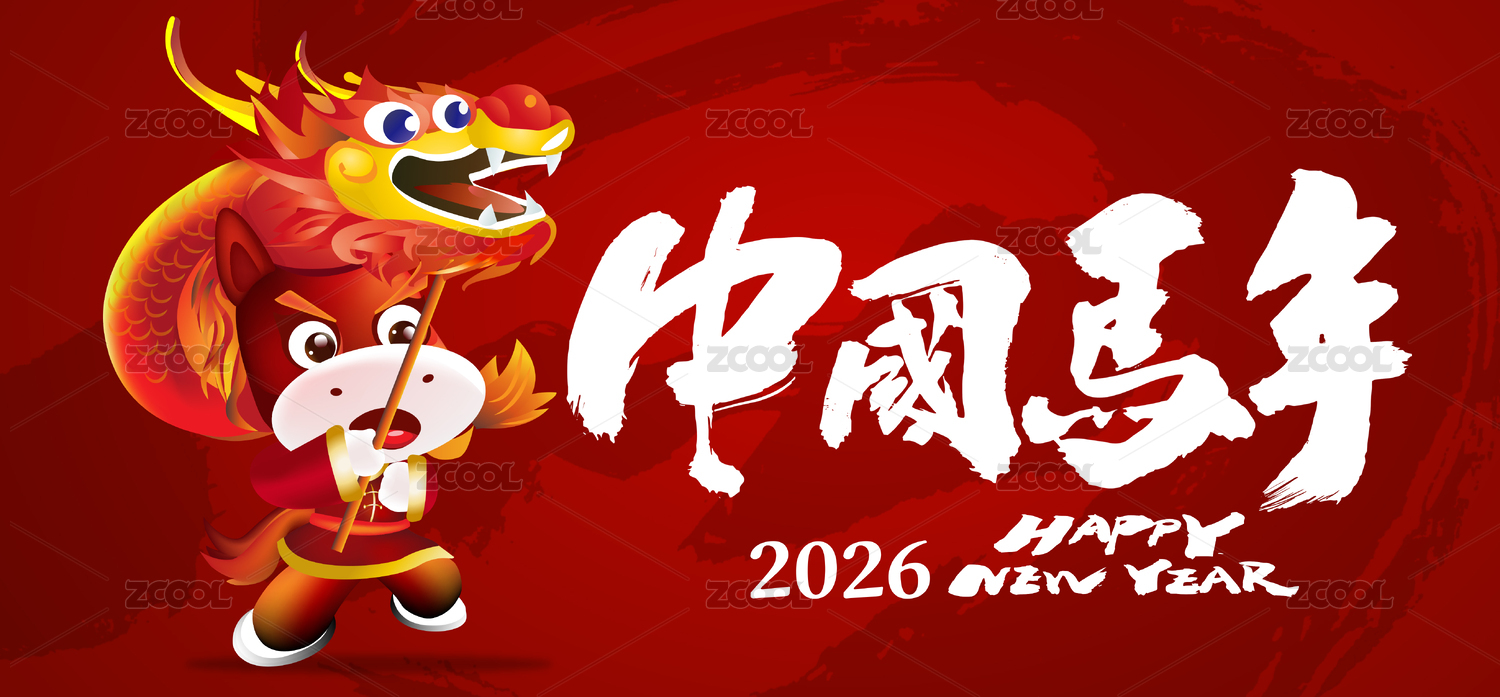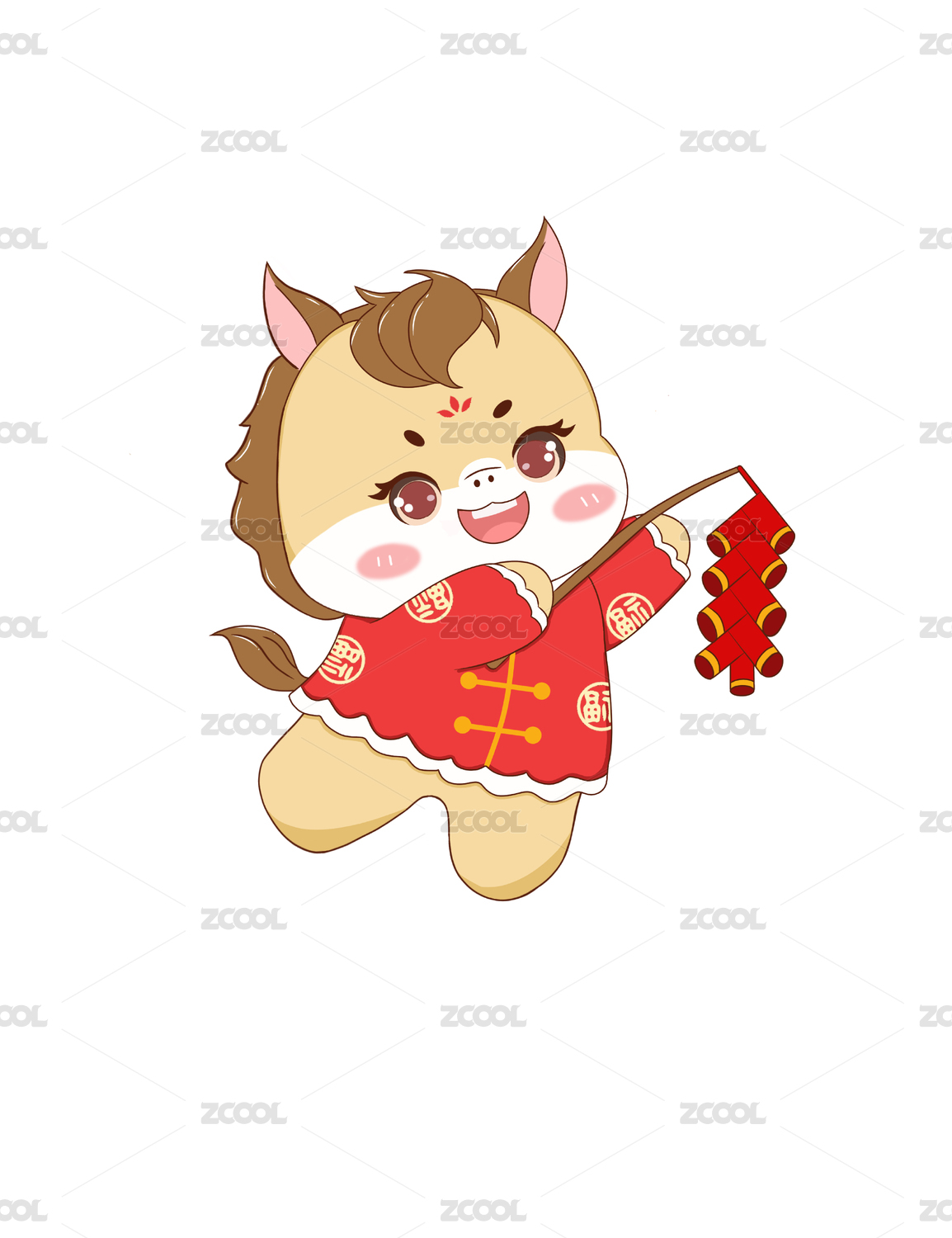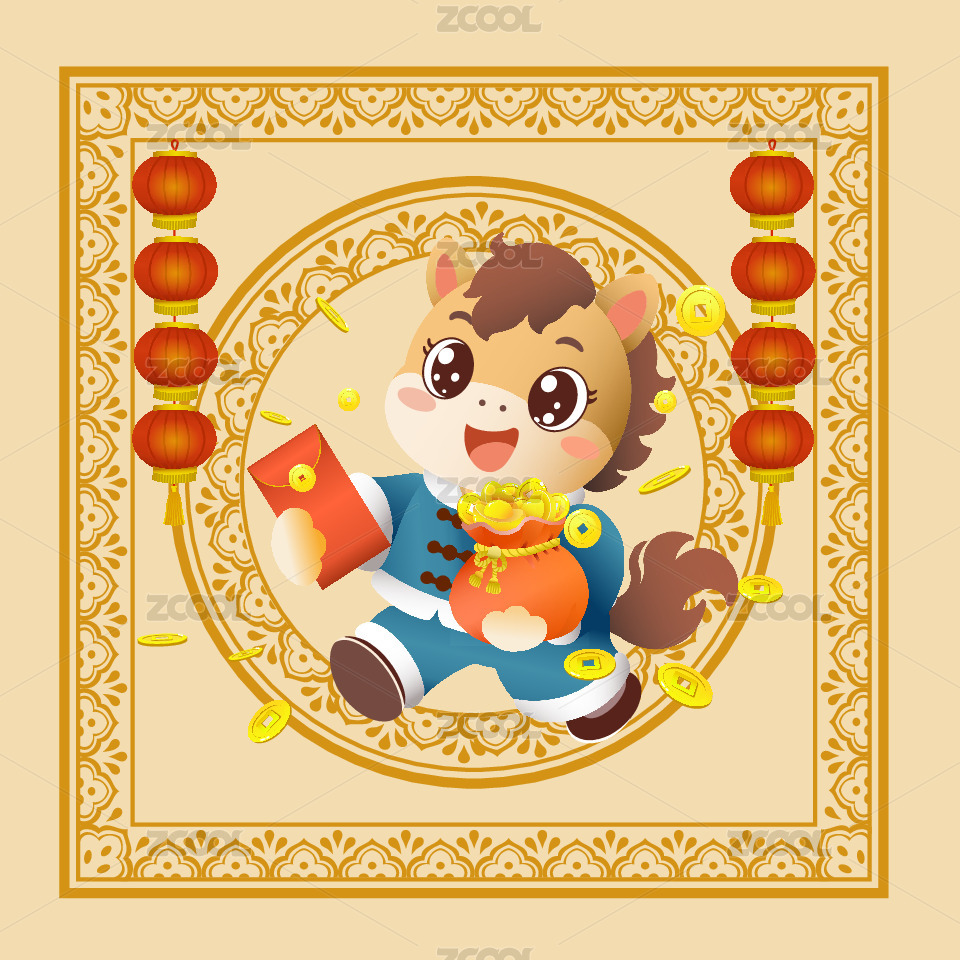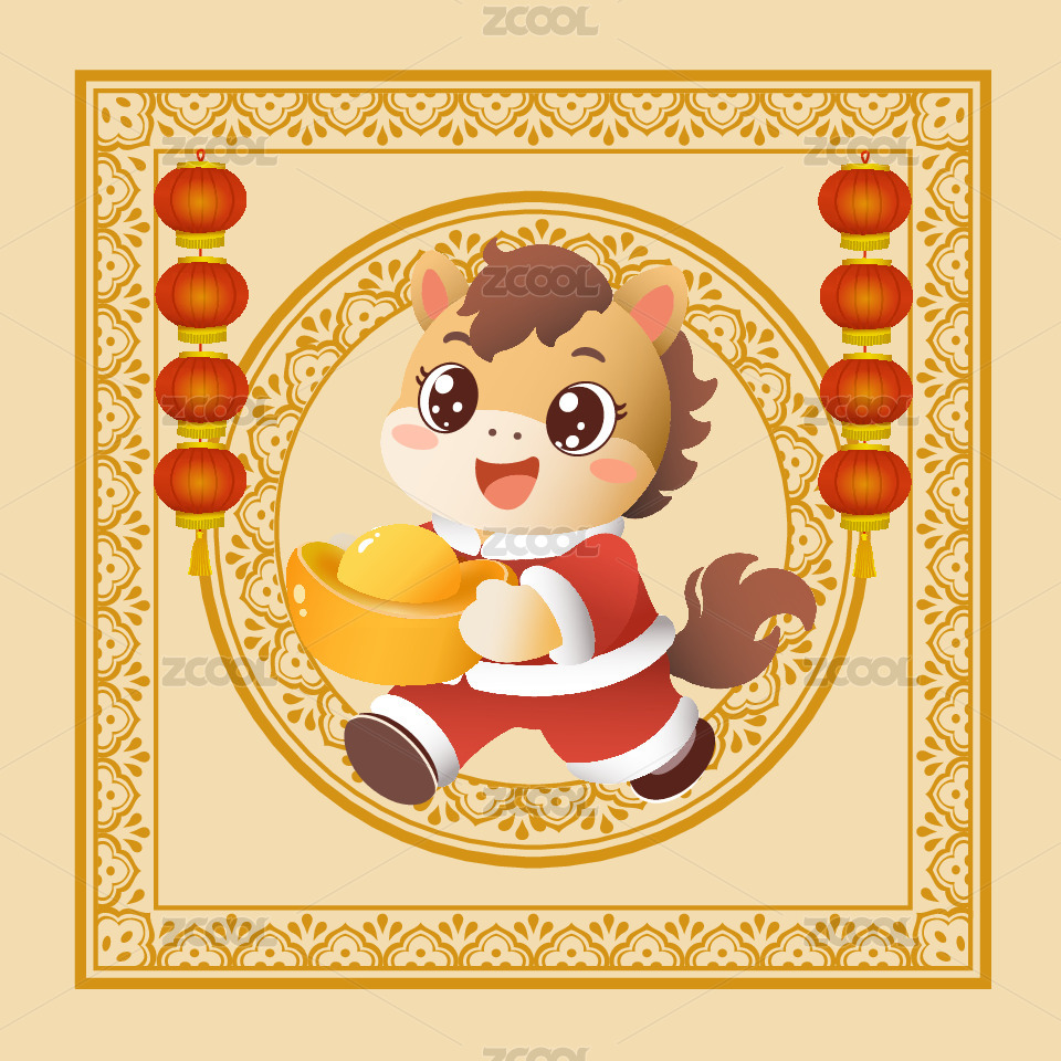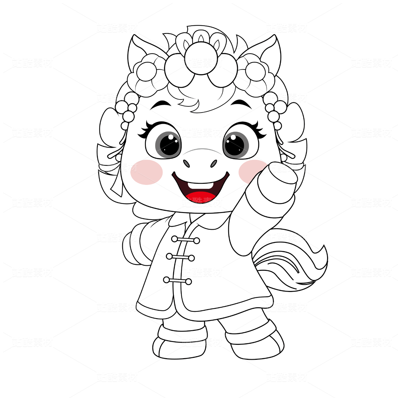 中国风卡通马龙马精神舞龙年俗节日庆典