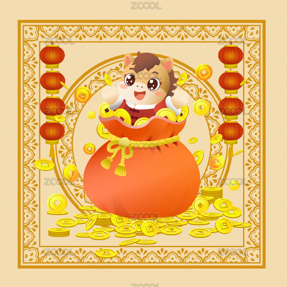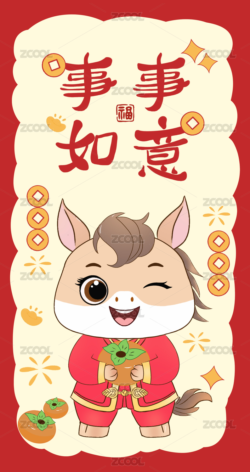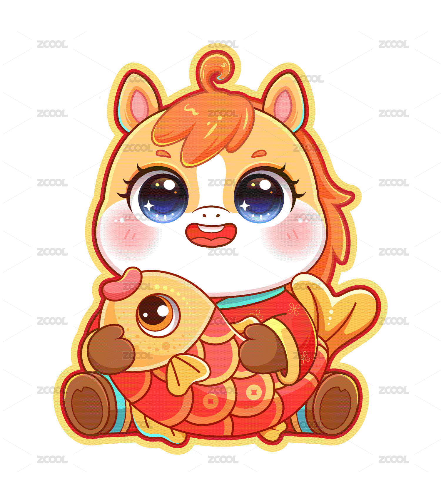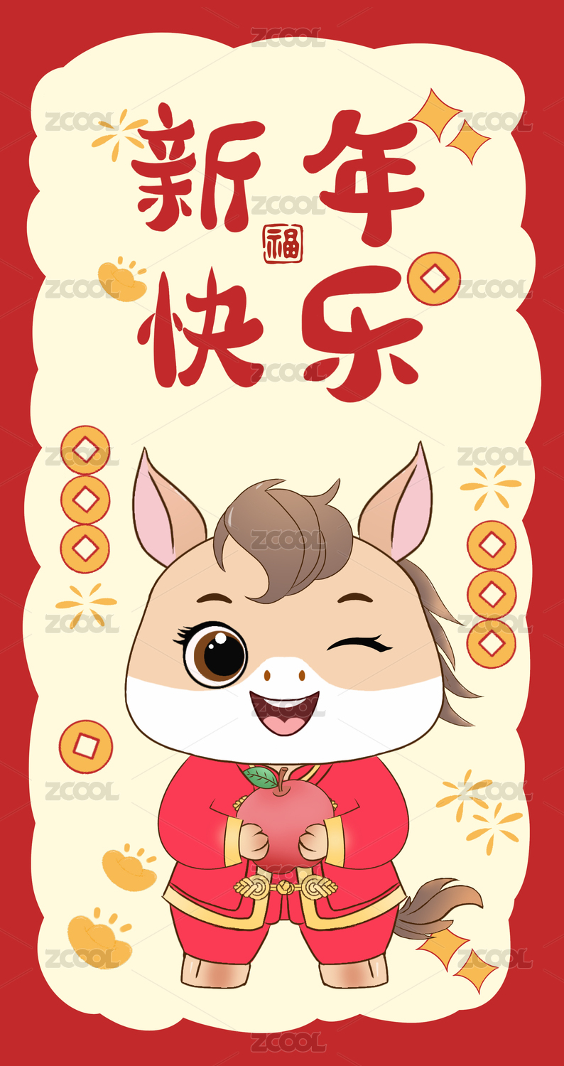 中国风卡通马龙马精神舞龙年俗节日庆典