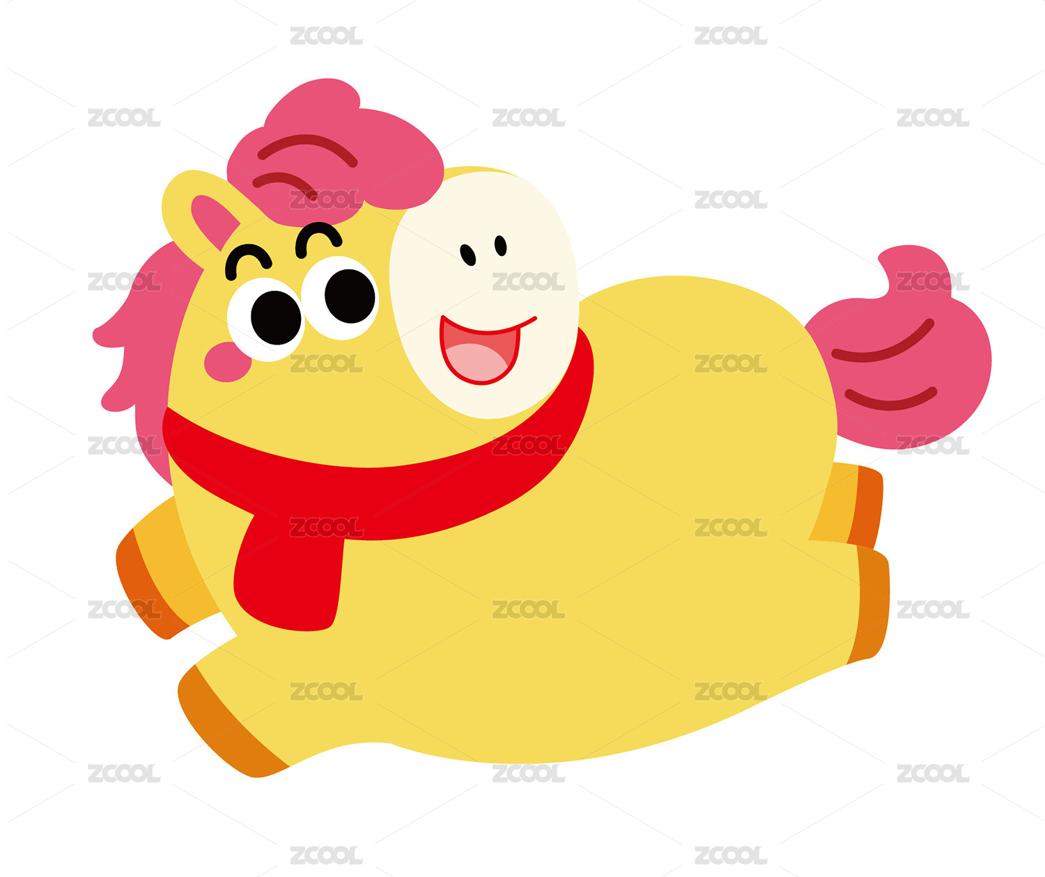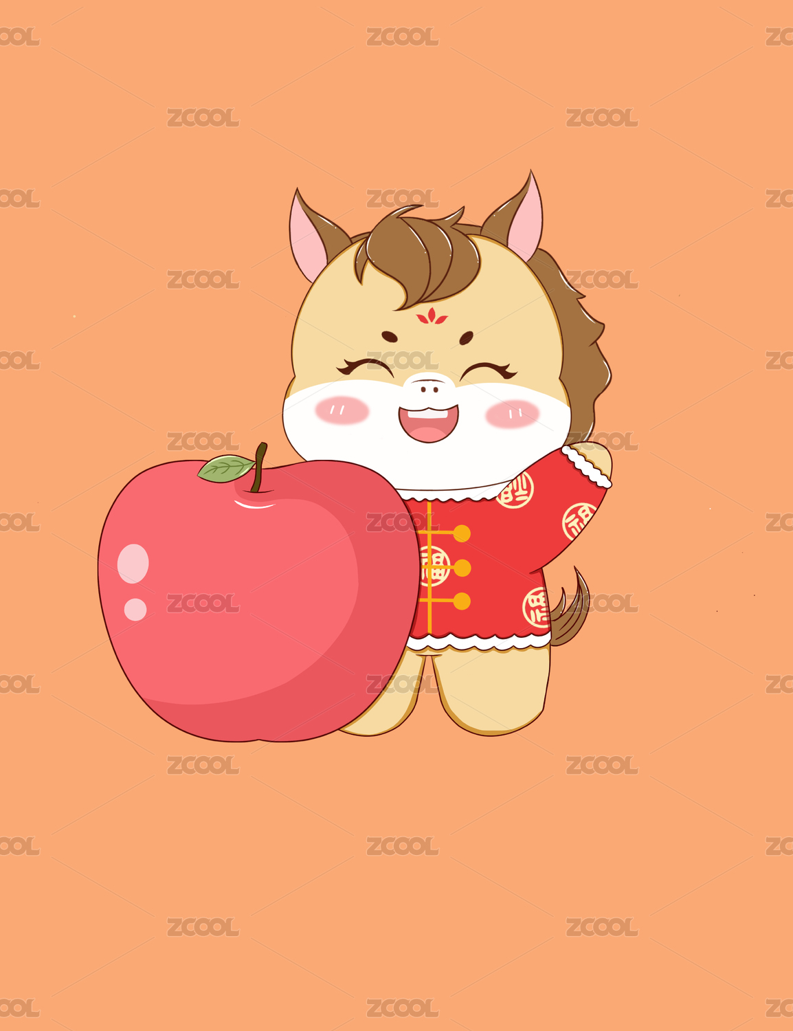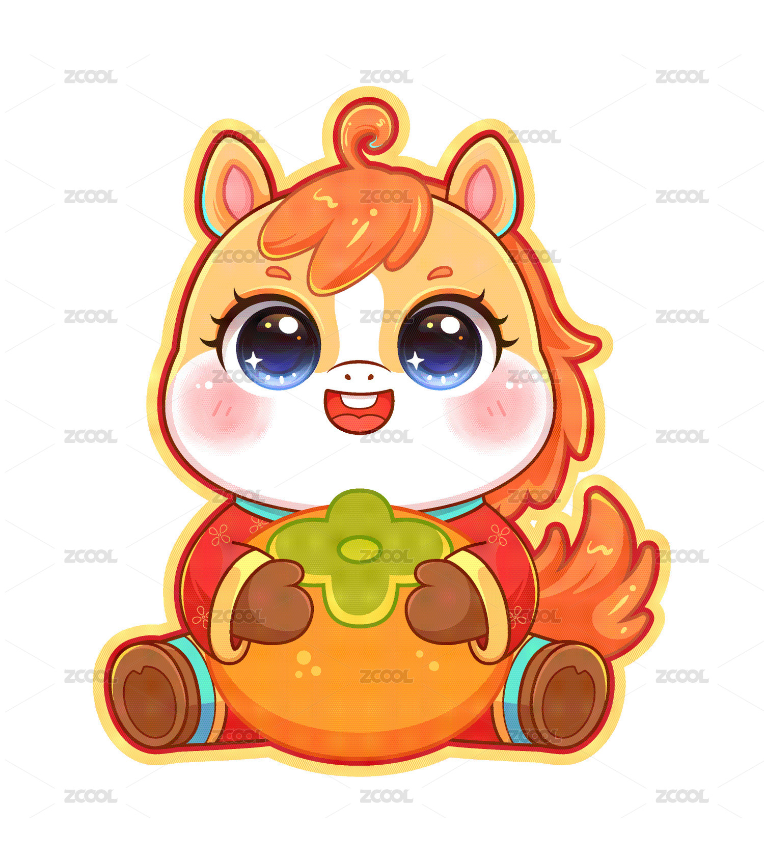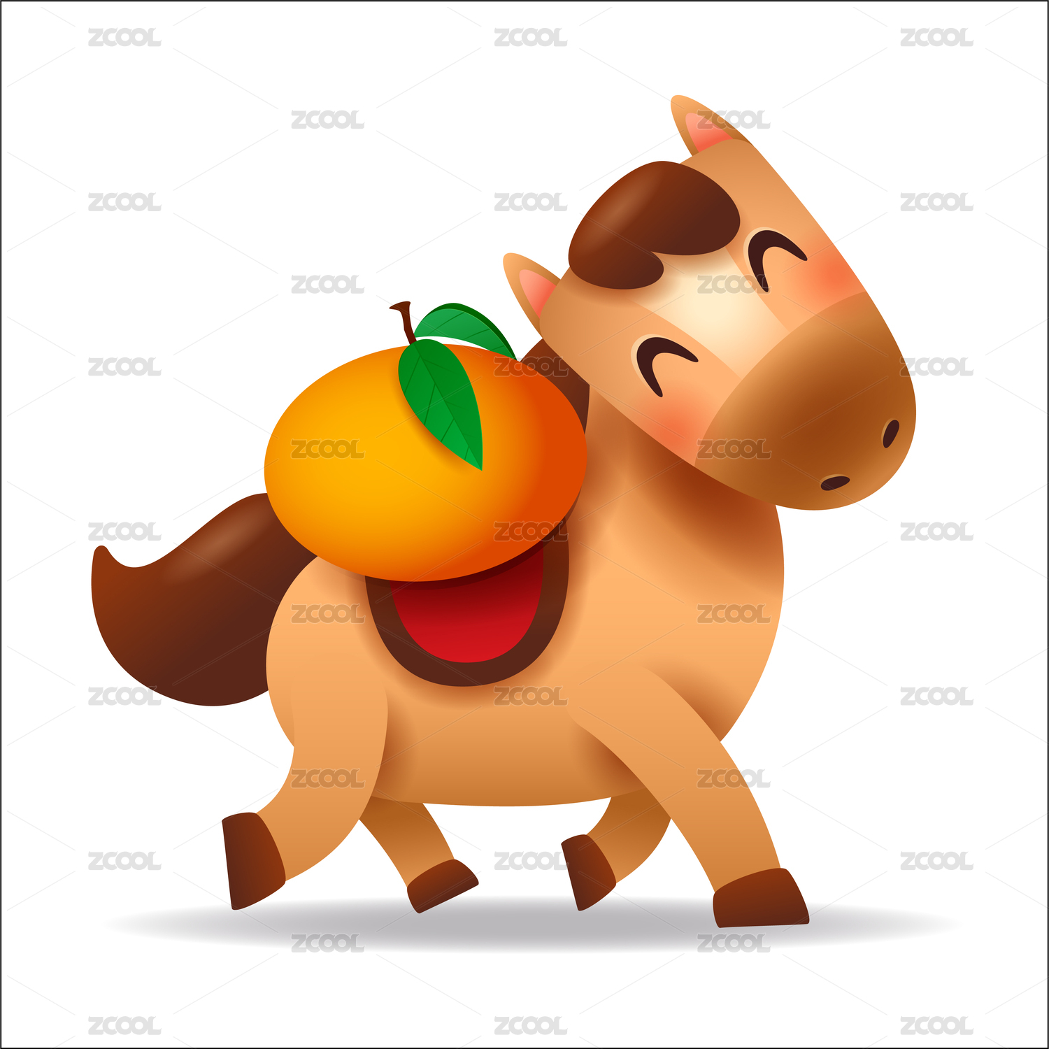 可爱小卡通马驮着一个大橘子 十二生肖-马