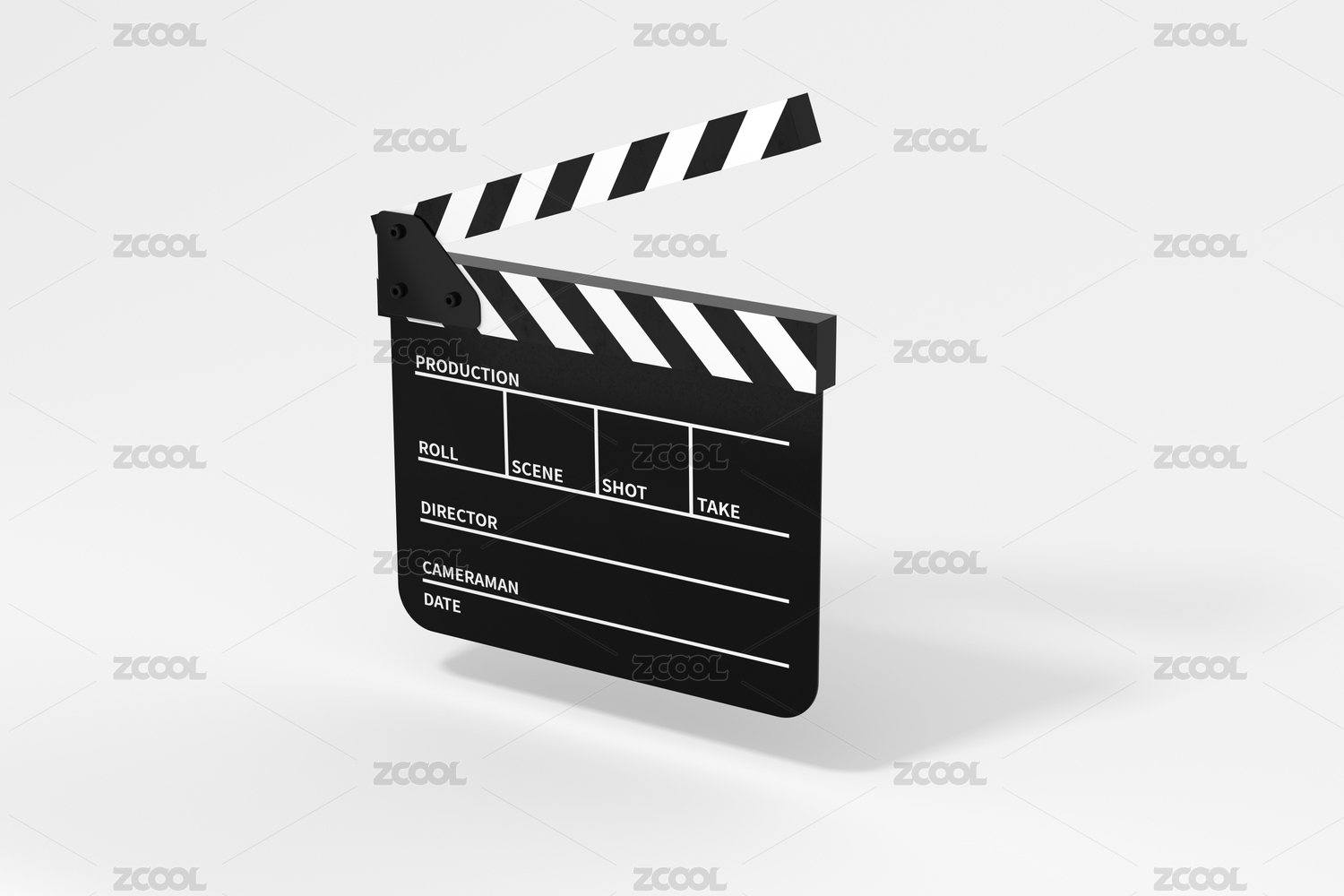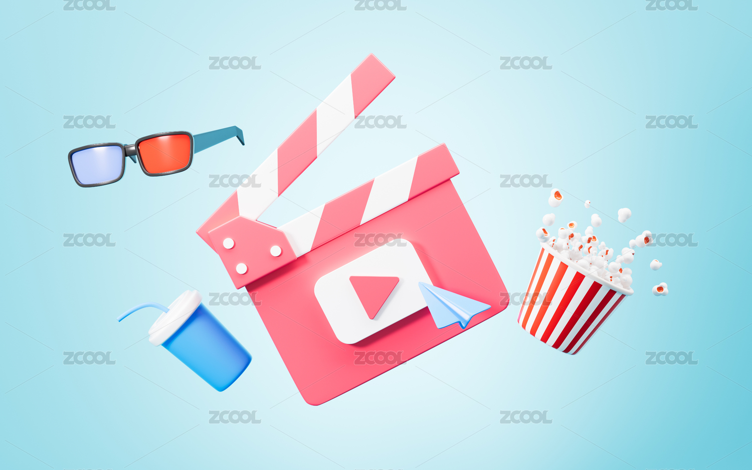 卡通电影胶卷场记板爆米花零食饮料3D渲染