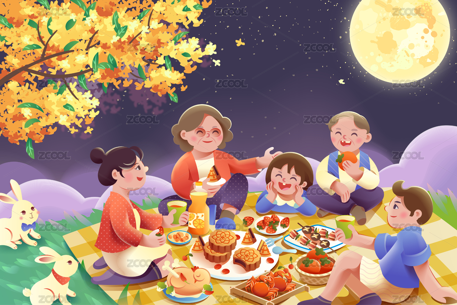 中秋插画一家人团圆
