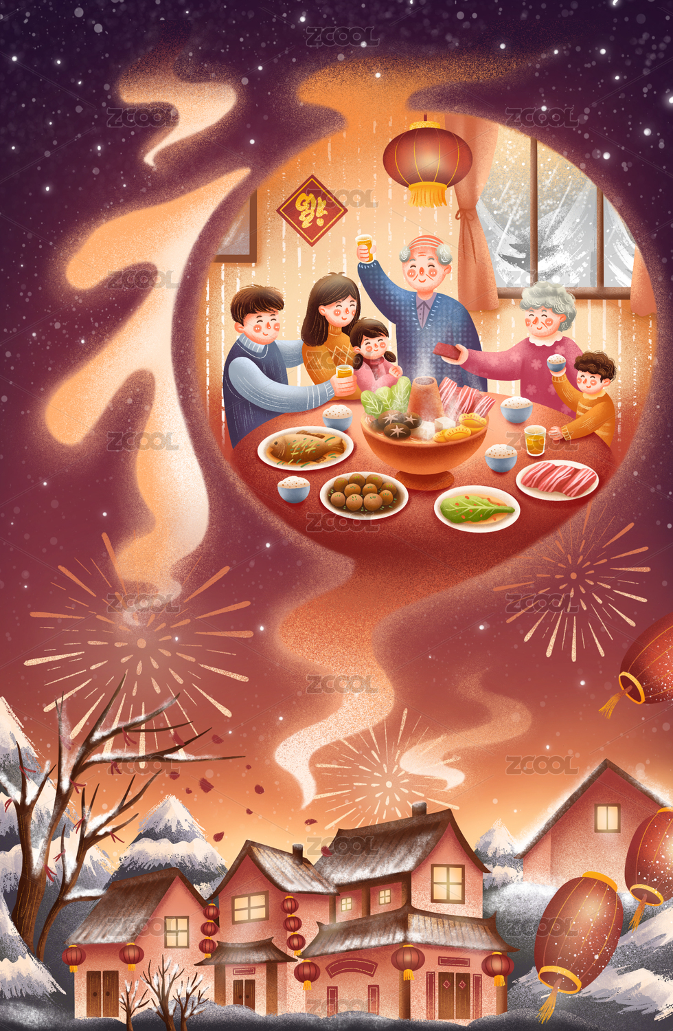 过年团圆饭喜庆素材