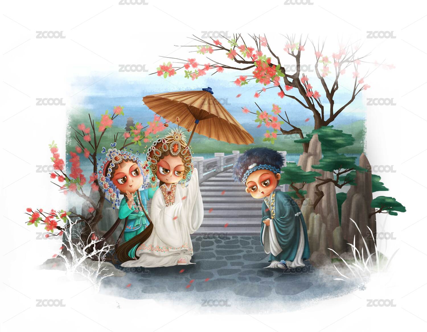 剪纸风浙江爱情故事梁祝和白蛇传插画