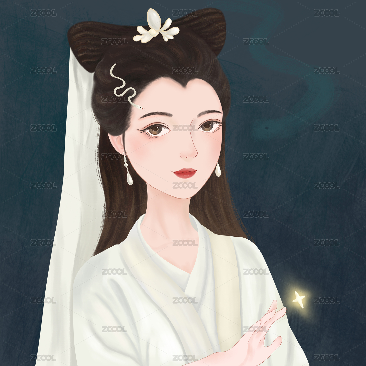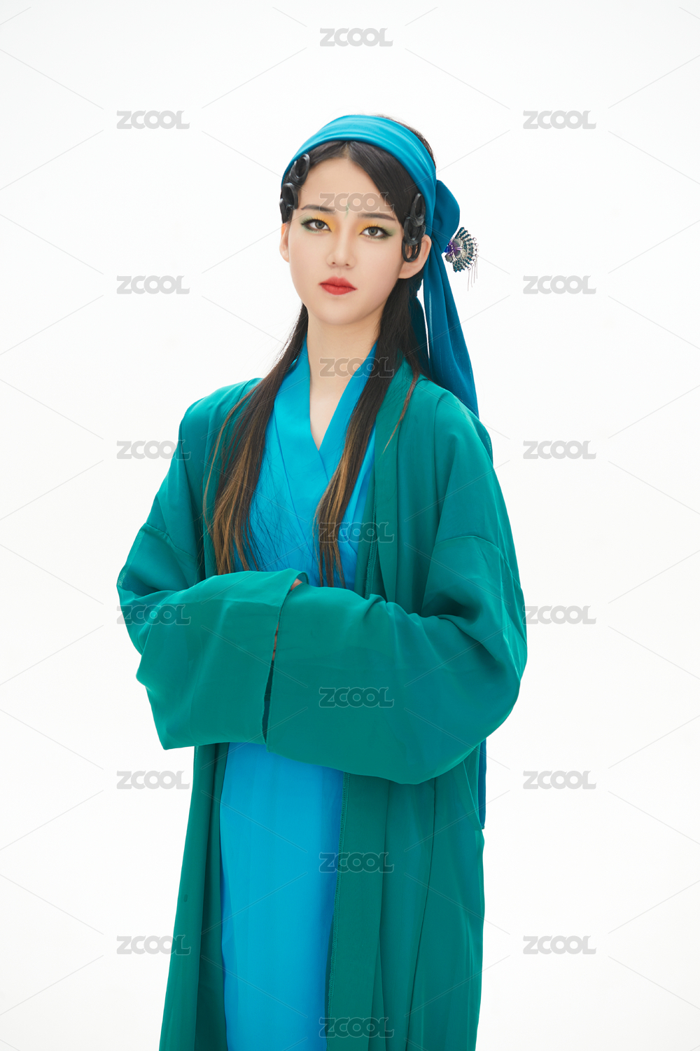 民间故事白蛇传中小青服饰妆面的亚洲少女