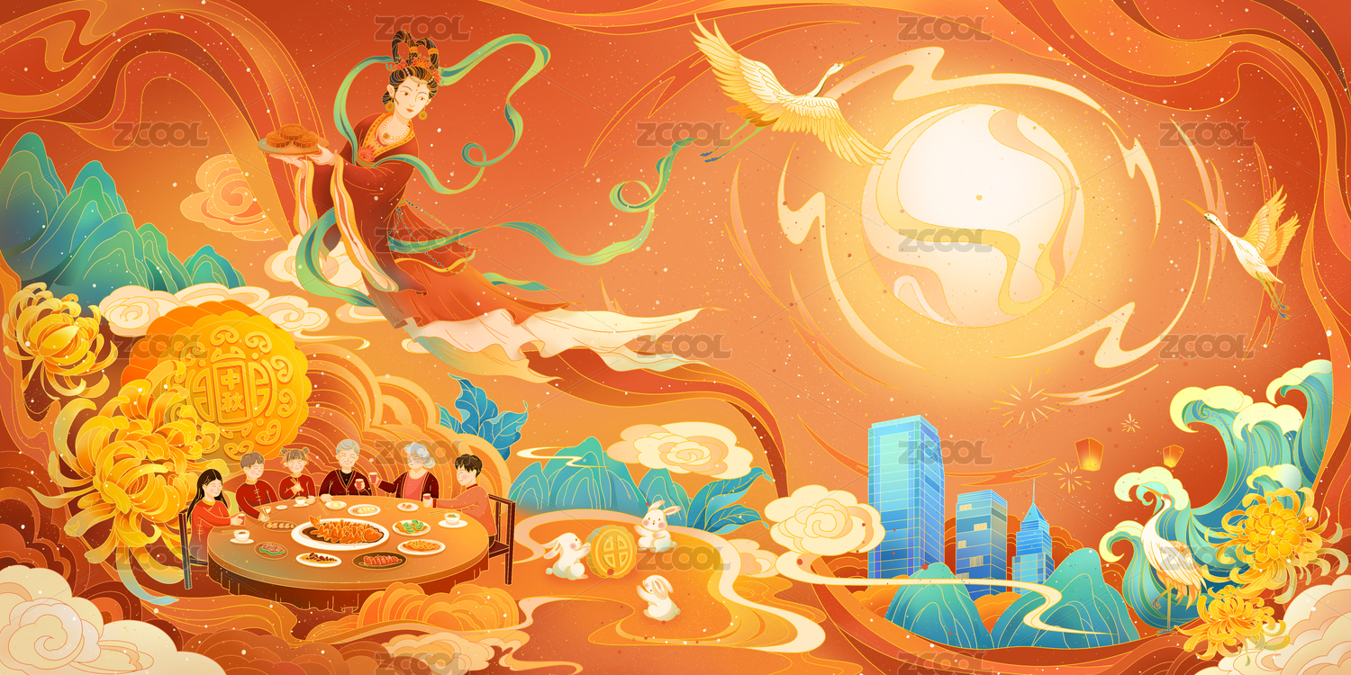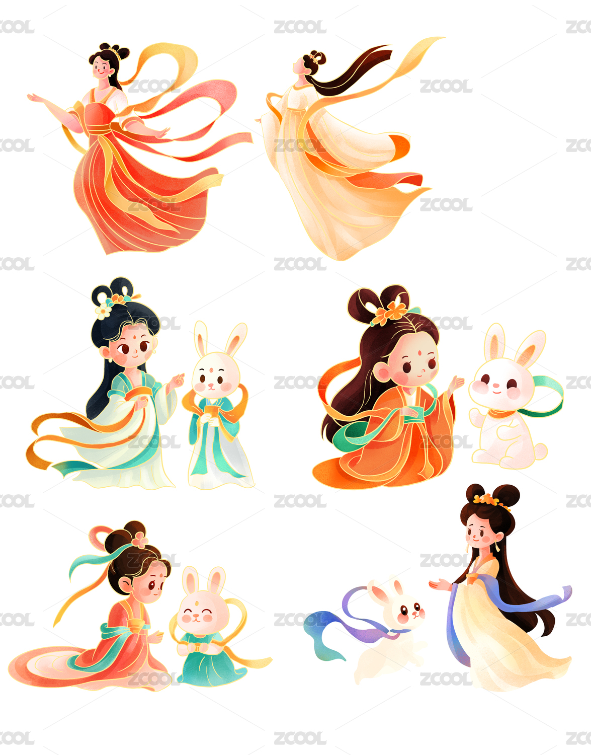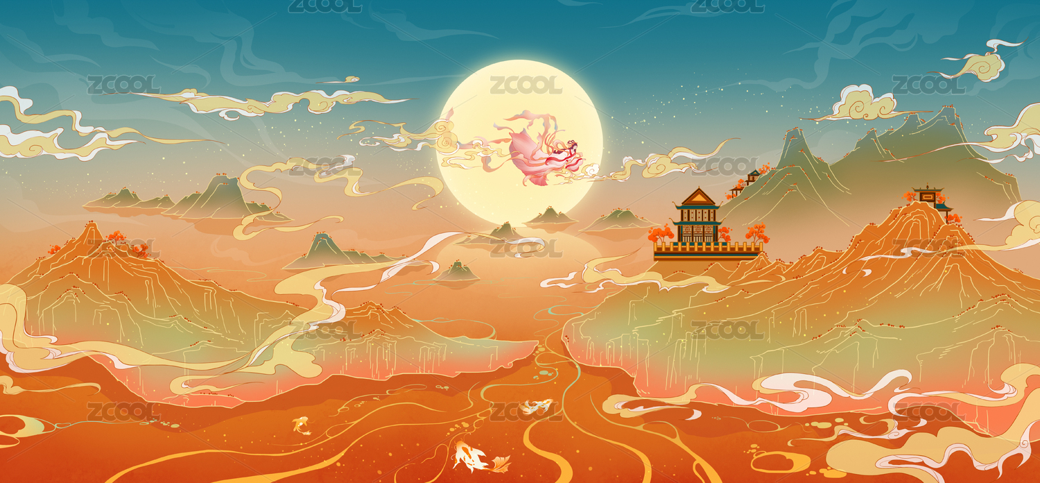 嫦娥/嫦娥奔月/嫦娥插画/嫦娥剪影