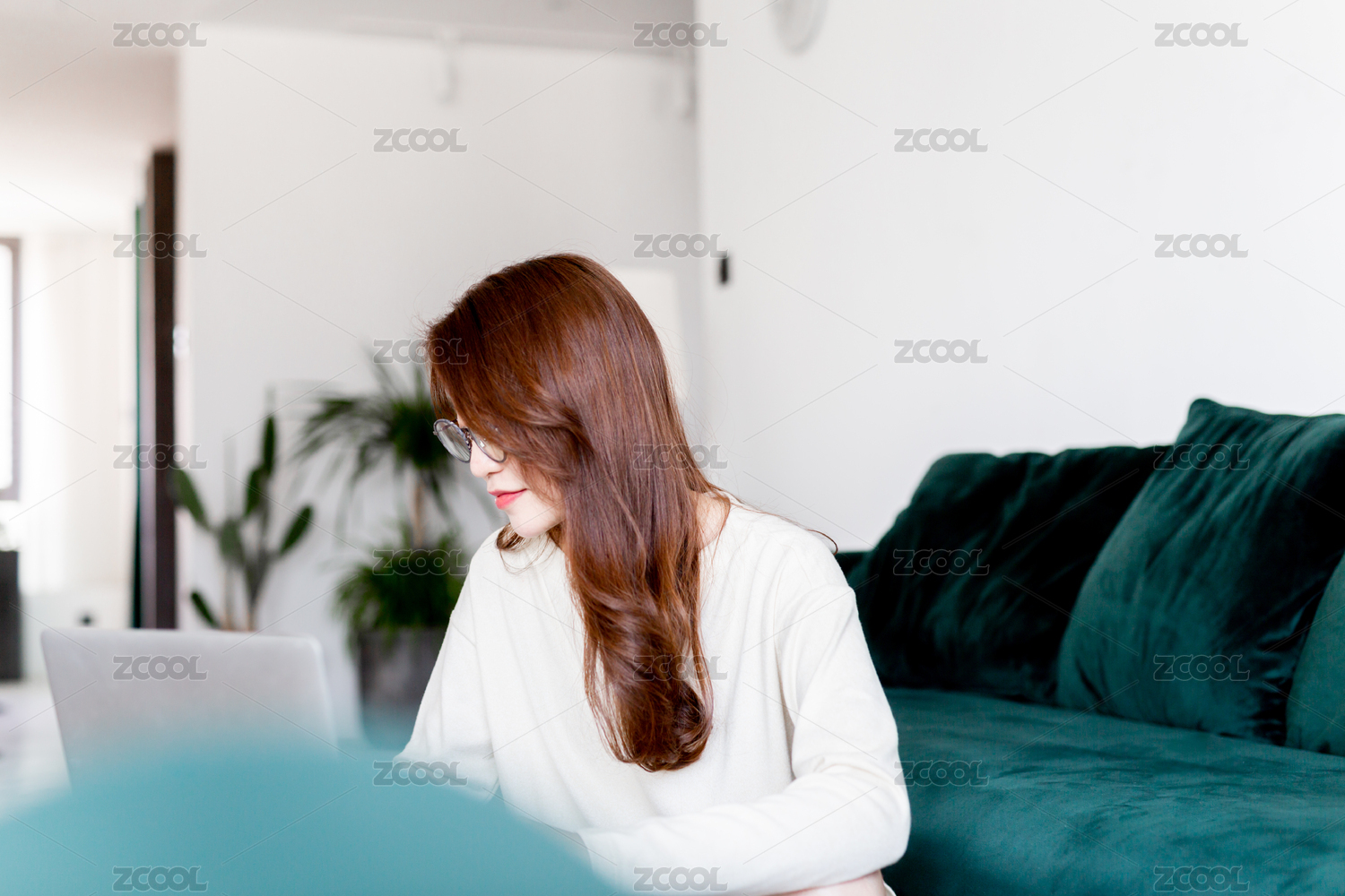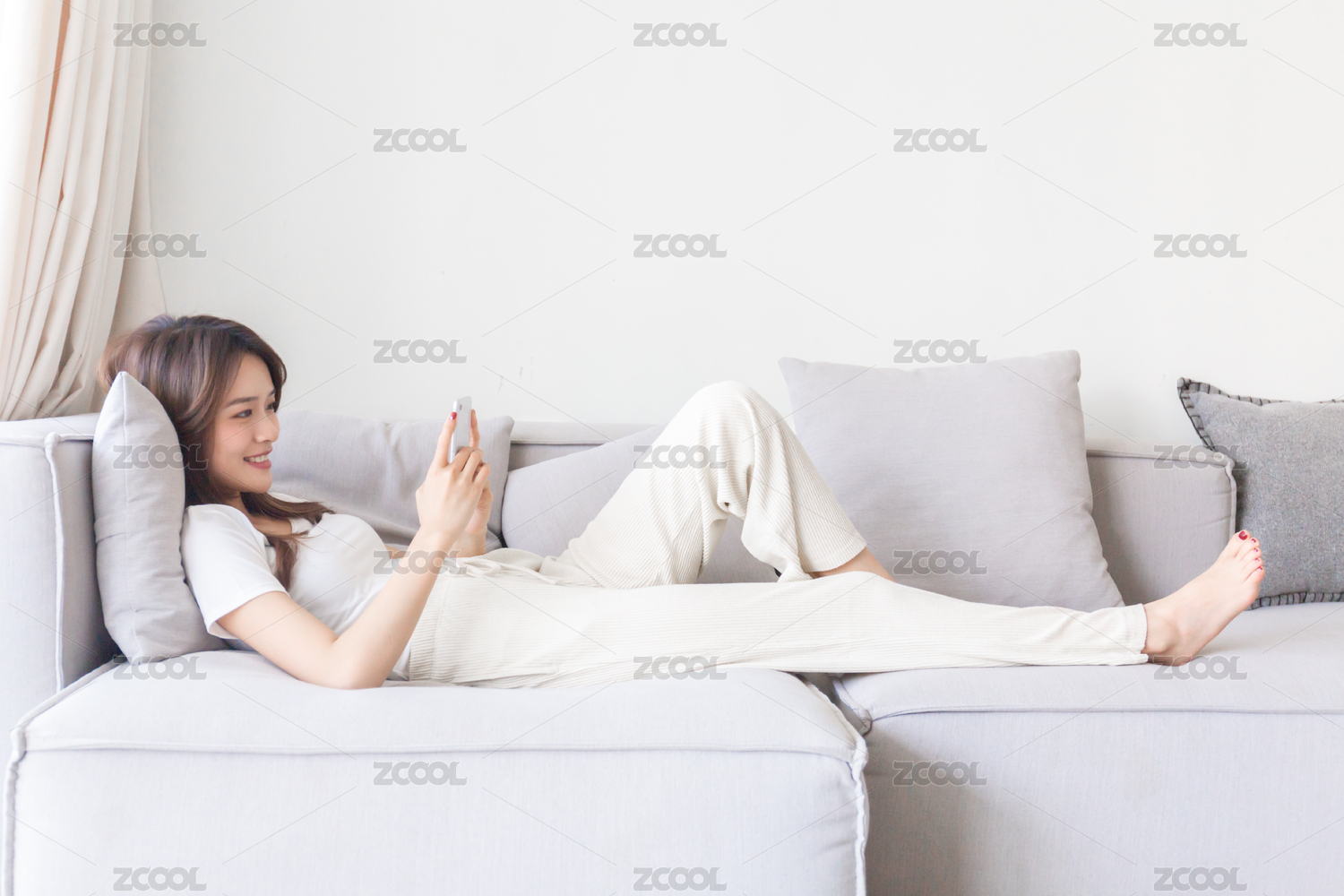 两个年轻的女性闺蜜坐在沙发上在家自拍