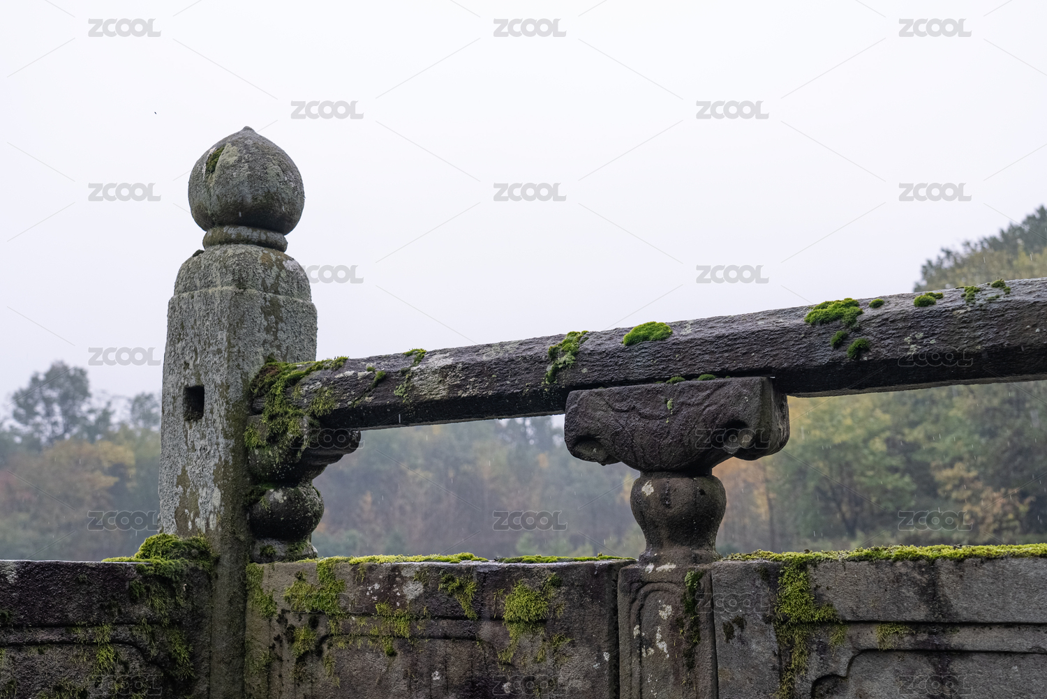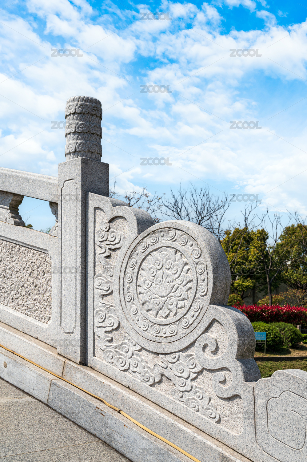 户外中式传统复古走廊栏杆月季蔷薇花植物