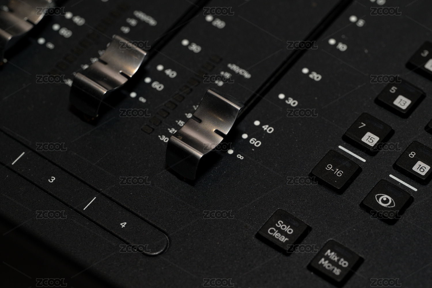 音频混音台的滑动推子特写