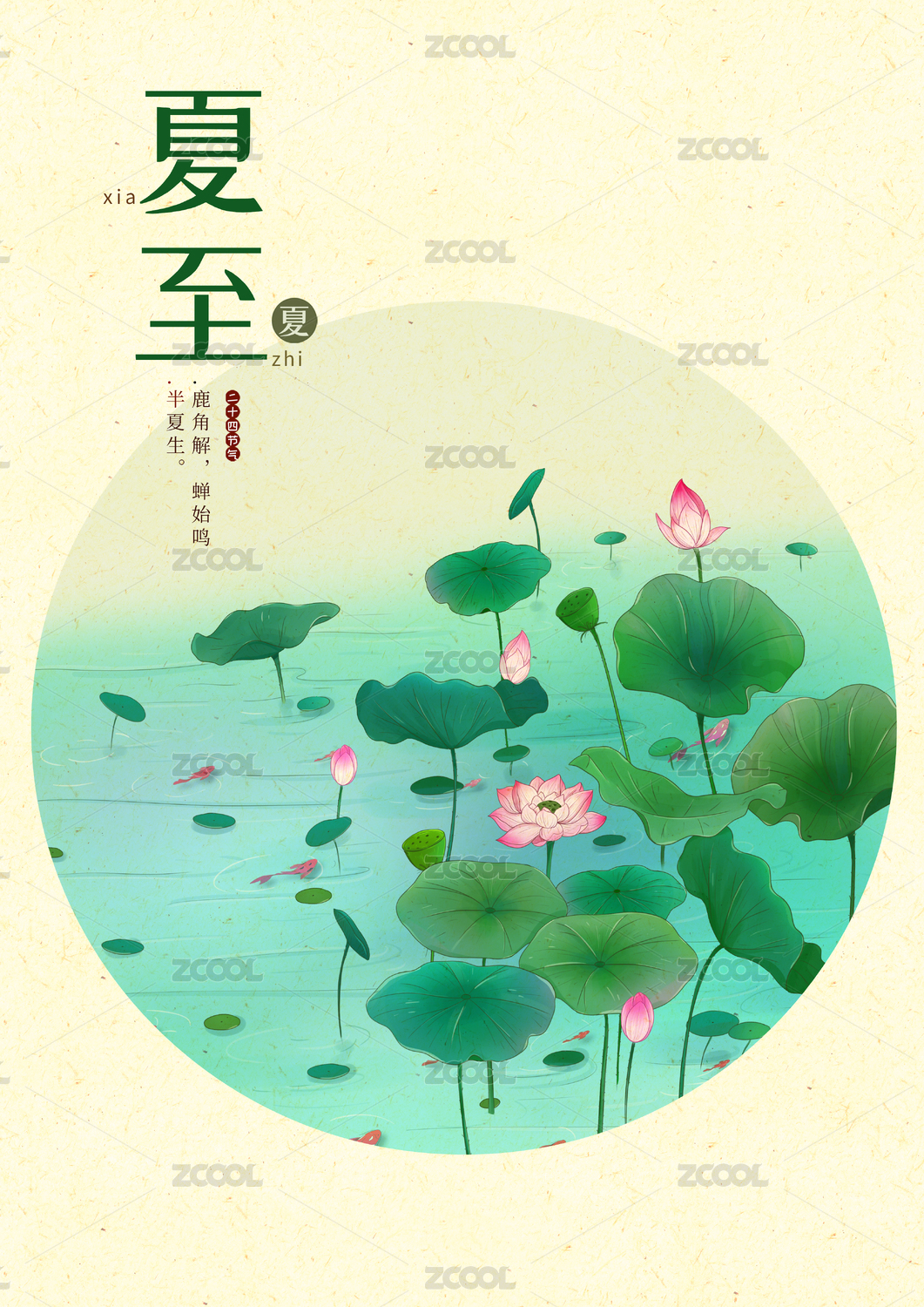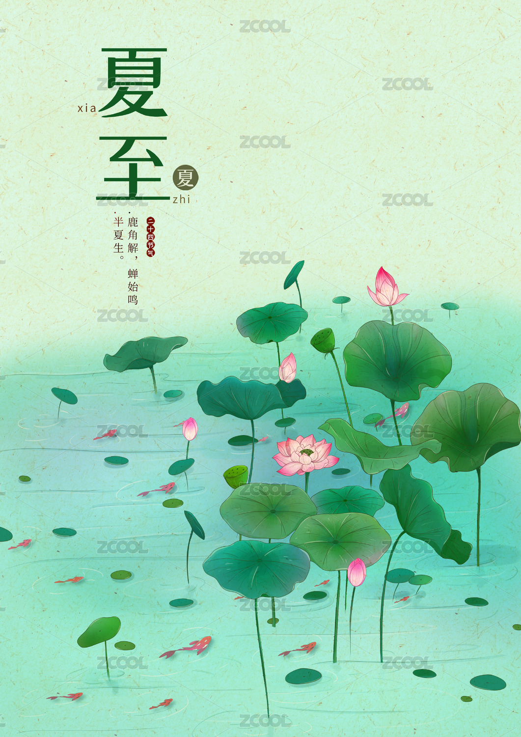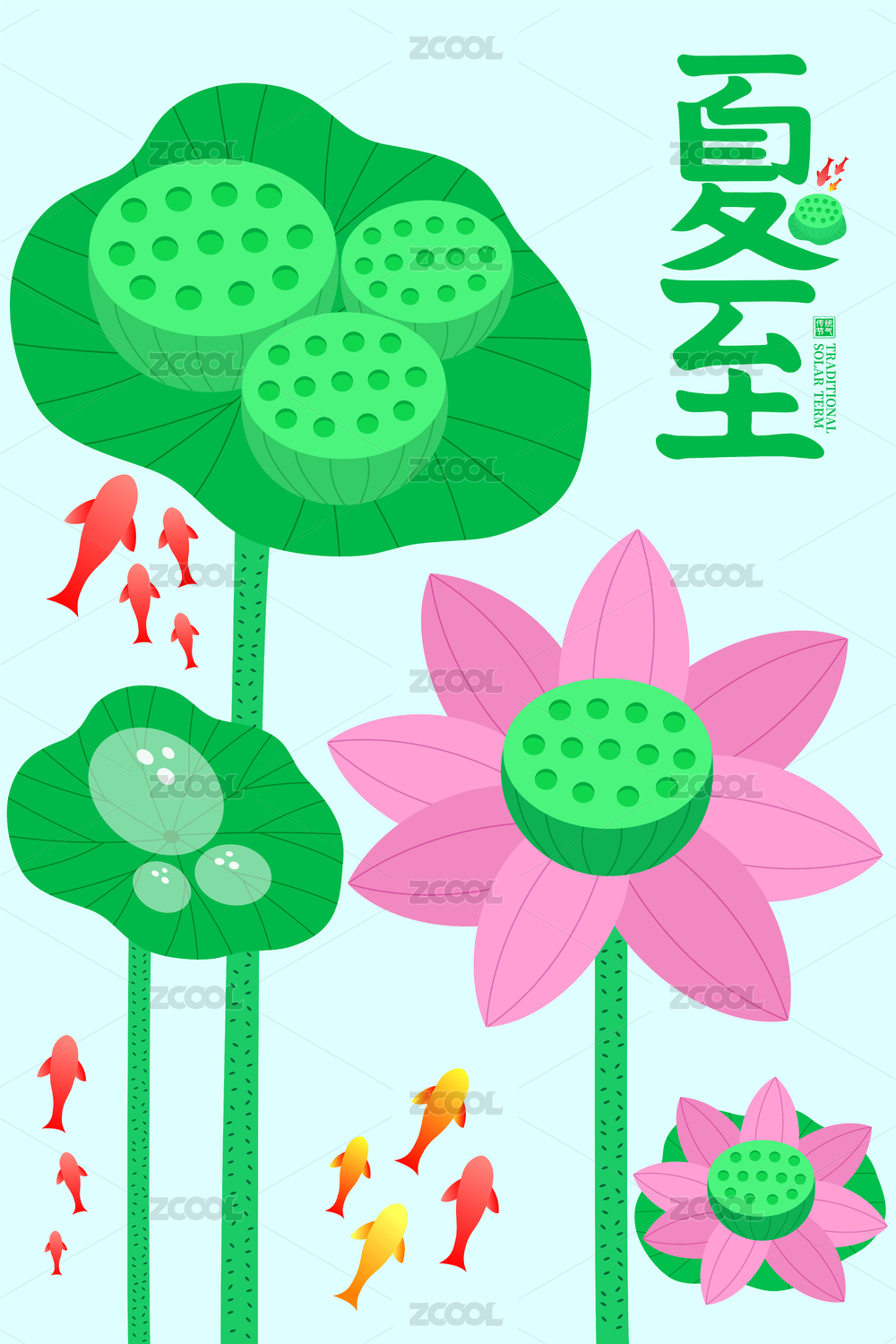 清新荷花莲蓬锦鲤夏至海报