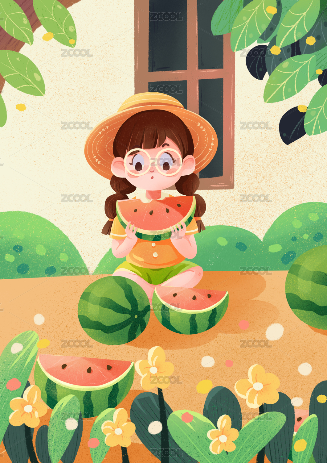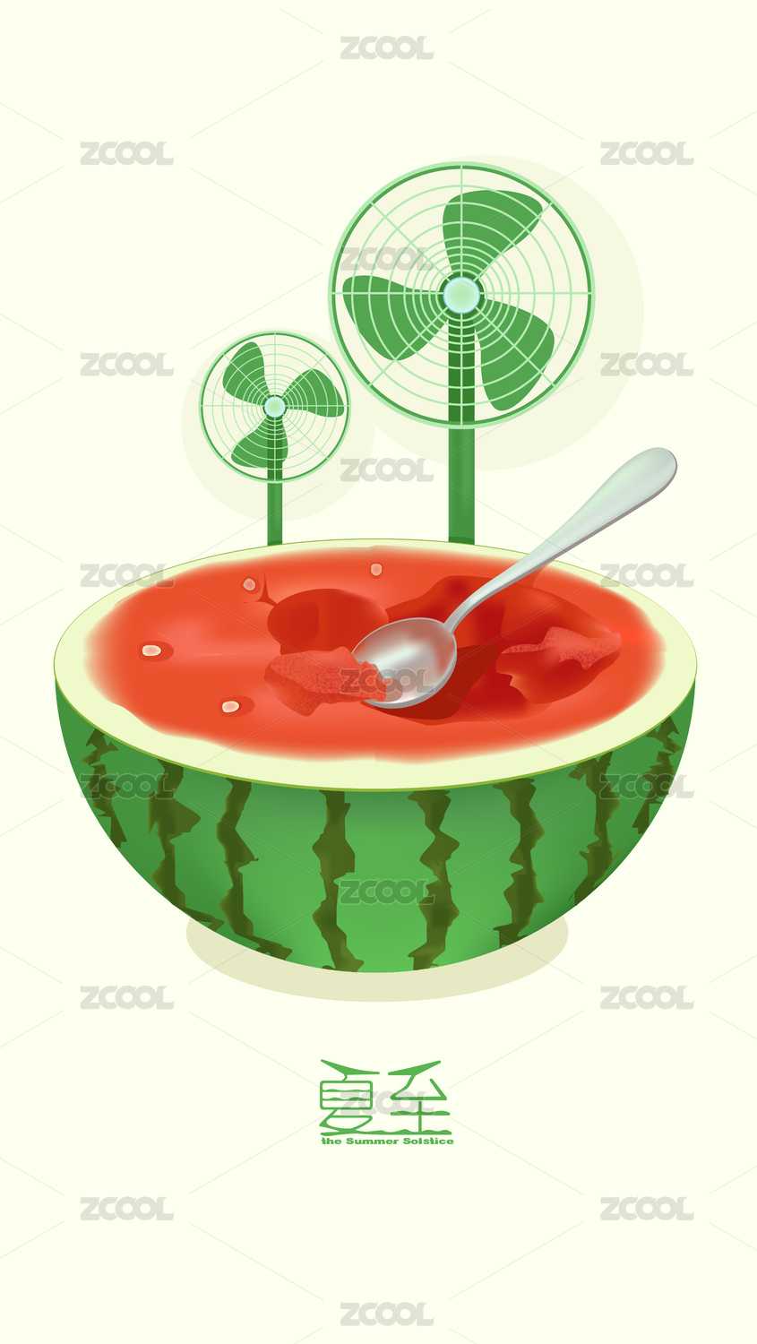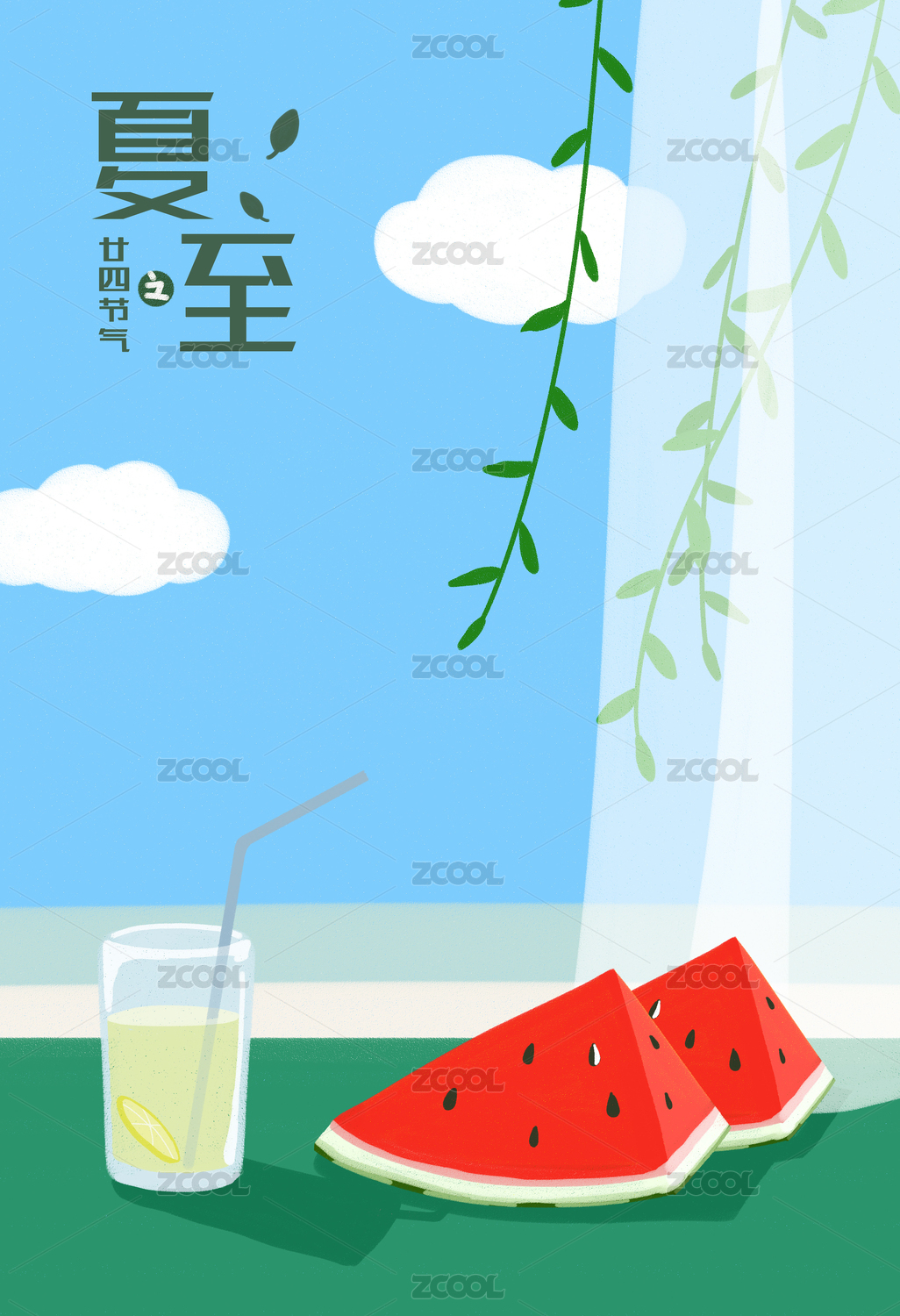夏至节气海报插画西瓜清凉