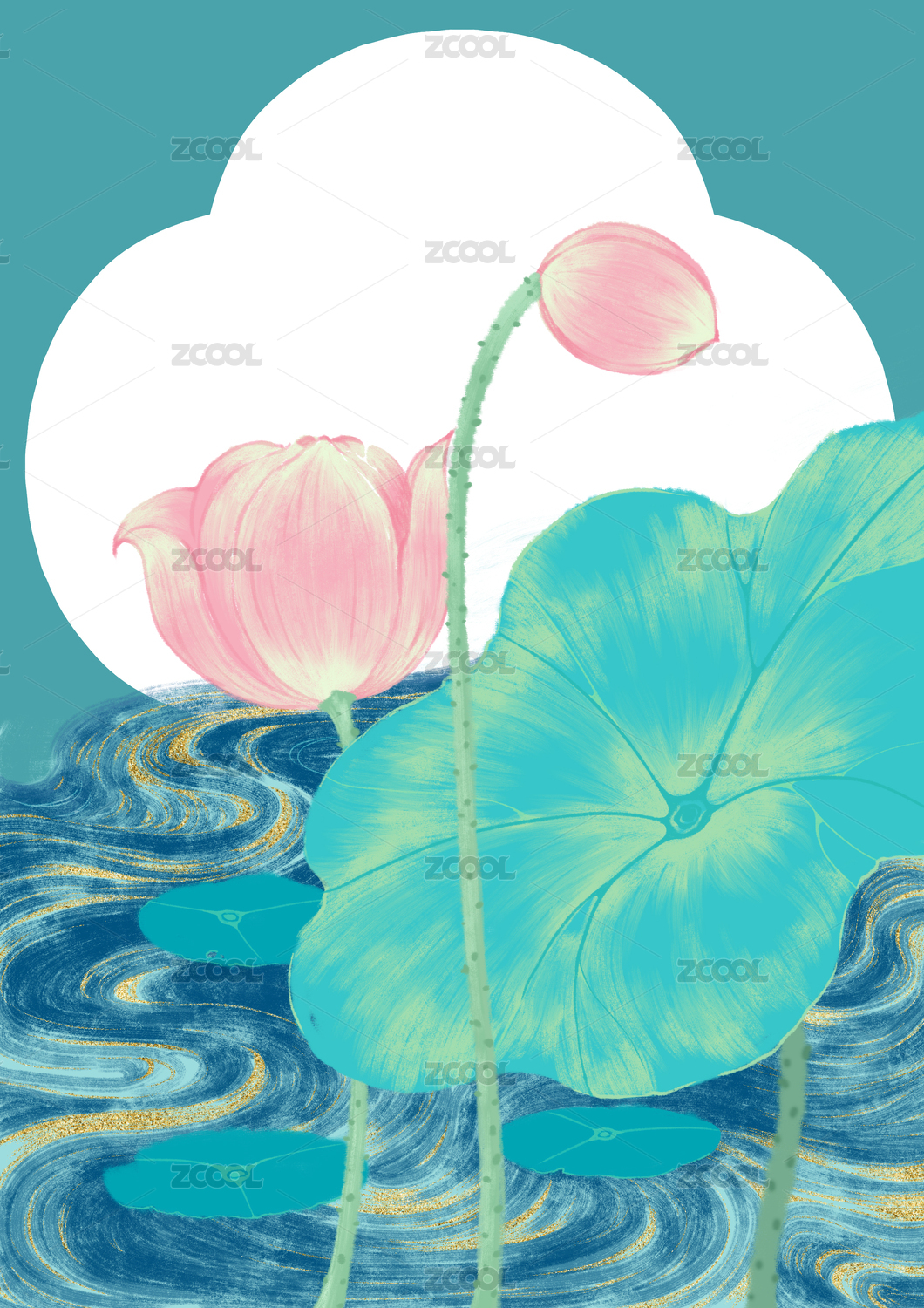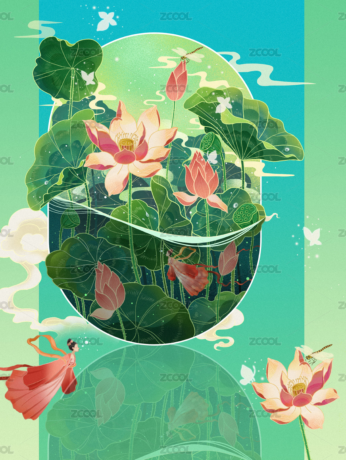 夏至荷花矢量海报