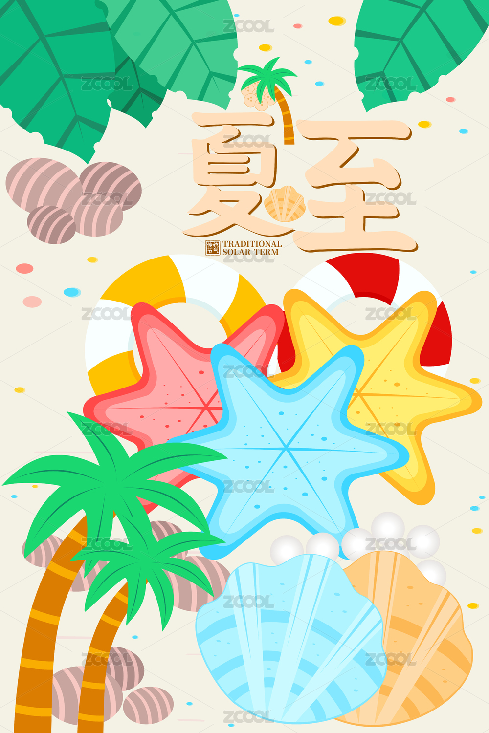夏日沙滩海星贝壳夏至海报