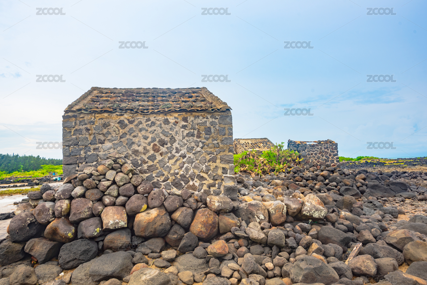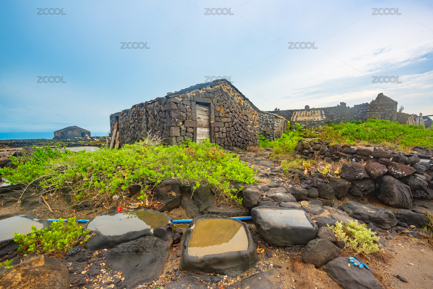 海南儋州盐丁古盐田里的石屋
