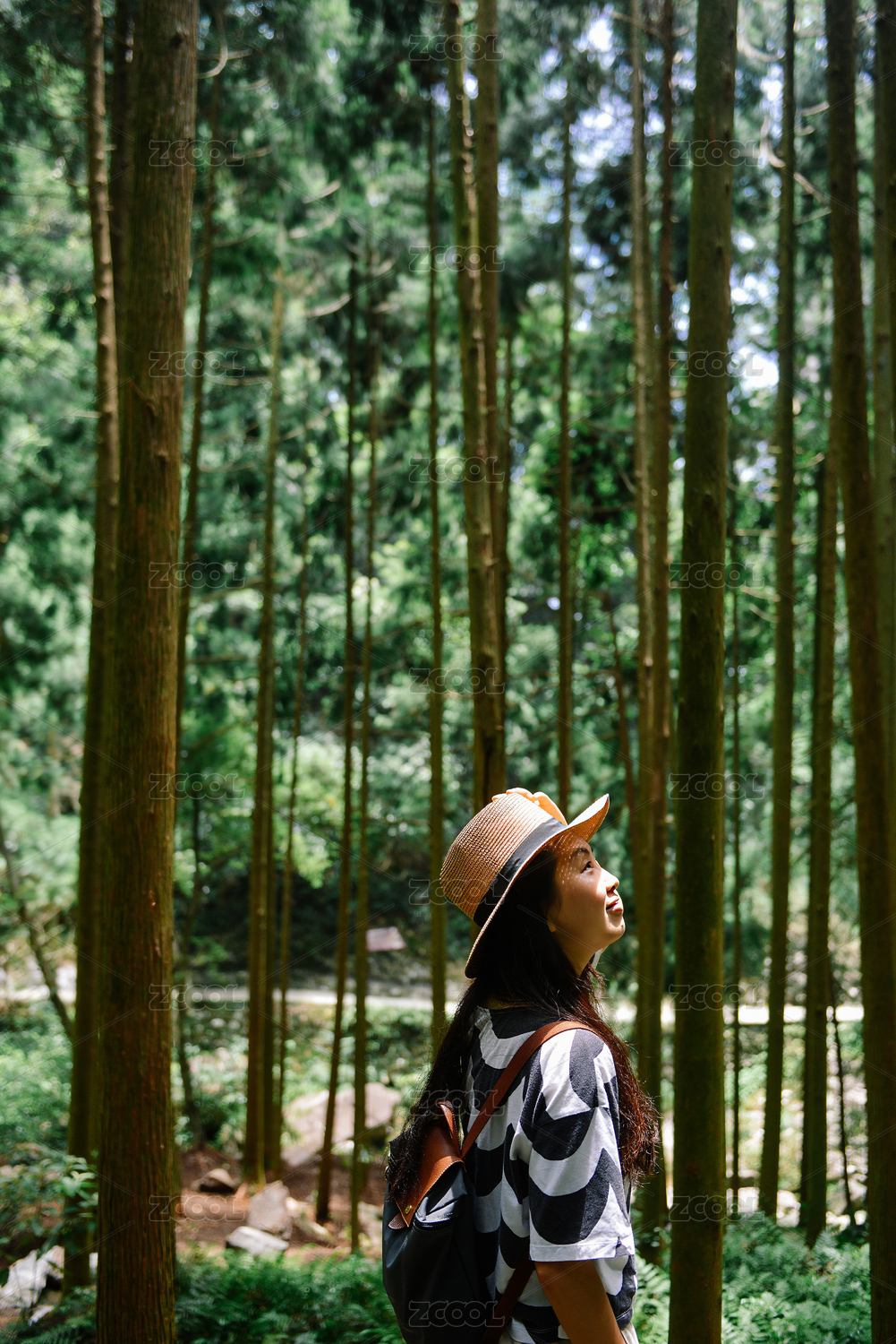 中国女性在浙江乐清雁荡山大龙湫森林游玩