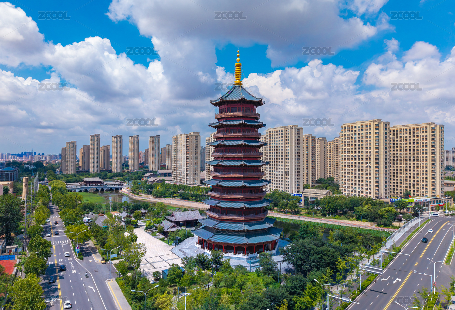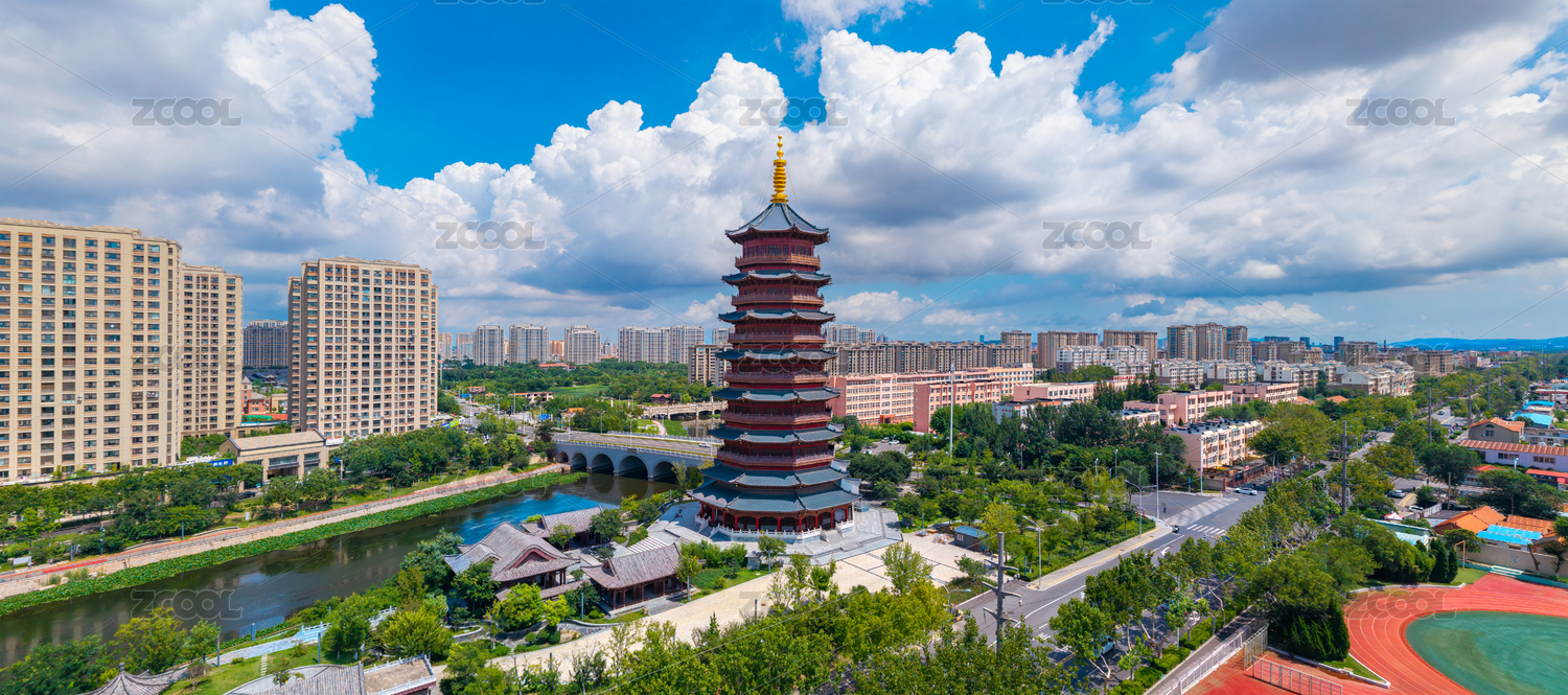 中国河南省安阳市天宁寺文峰塔航拍