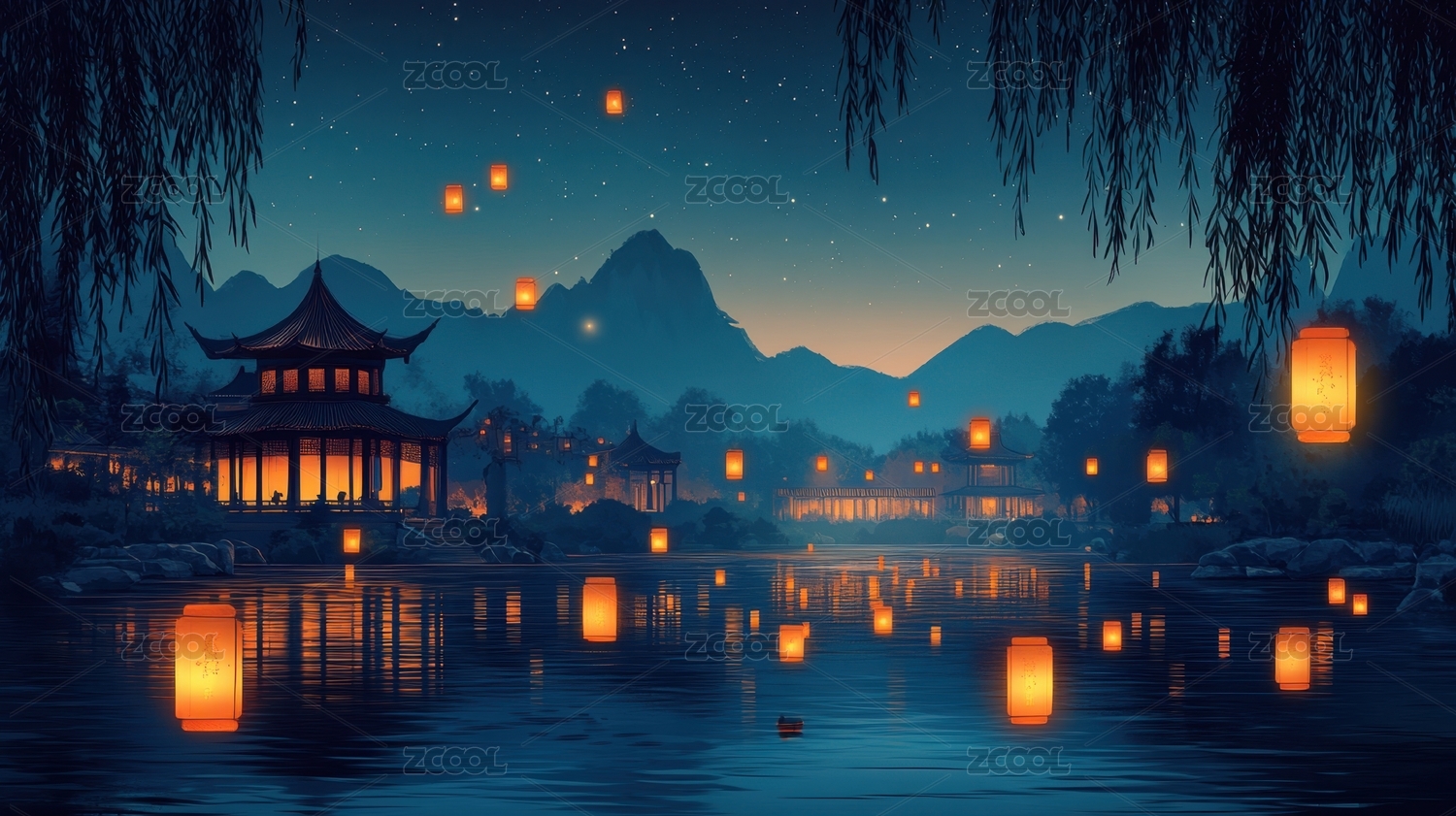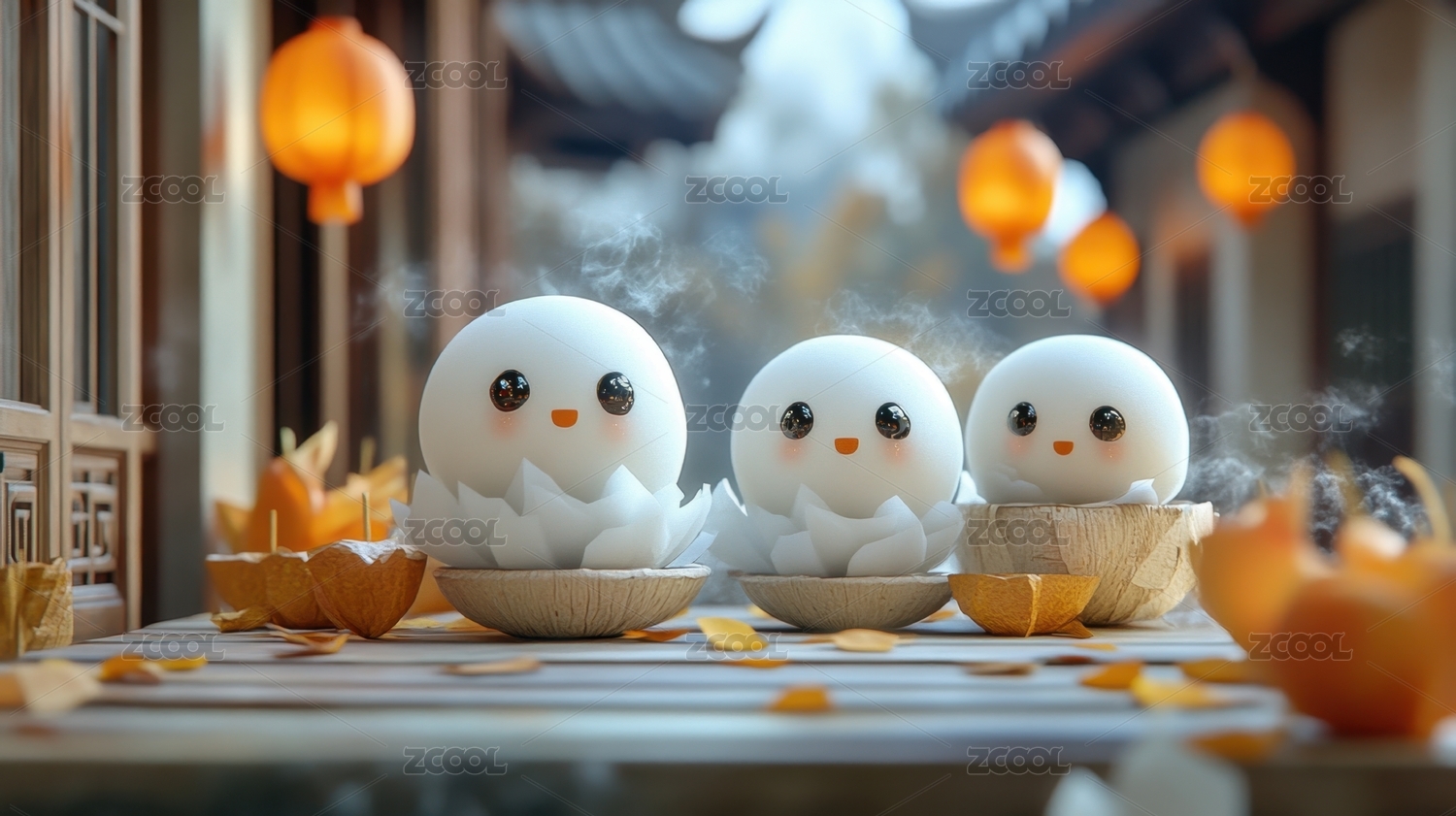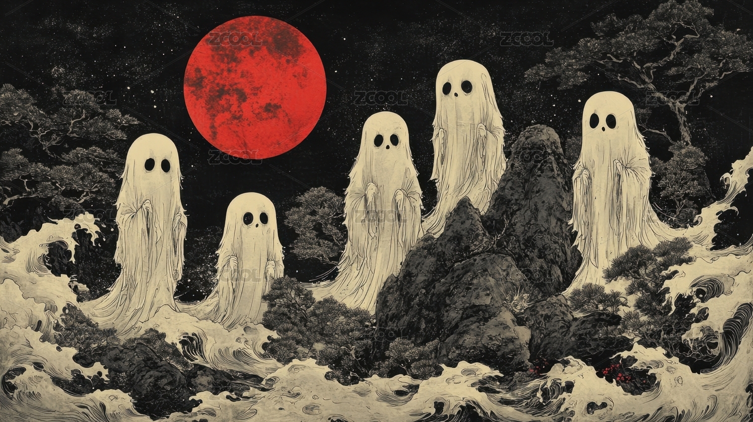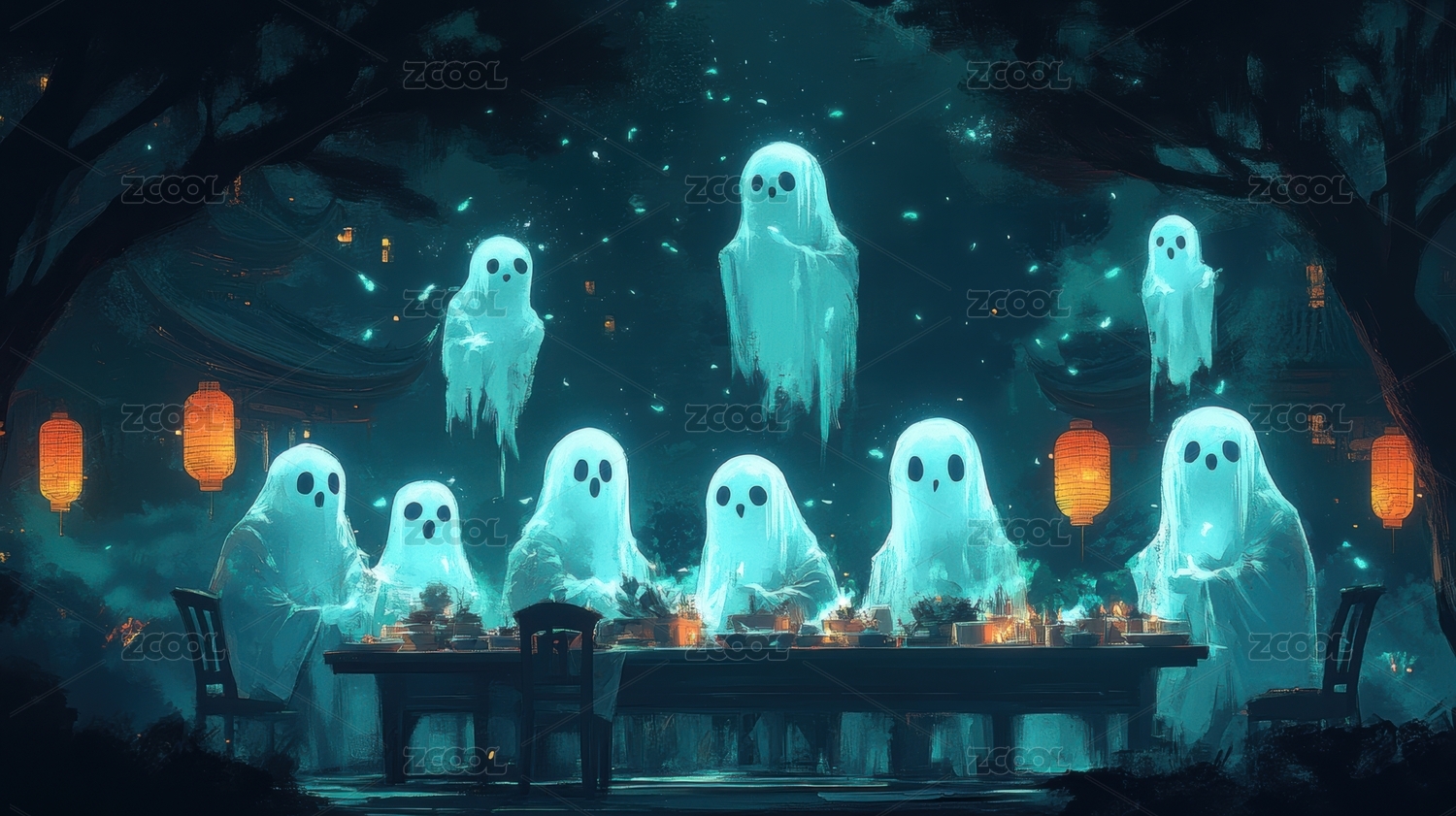 七月半中元节中国风可爱矢量诡异龙婆鬼节