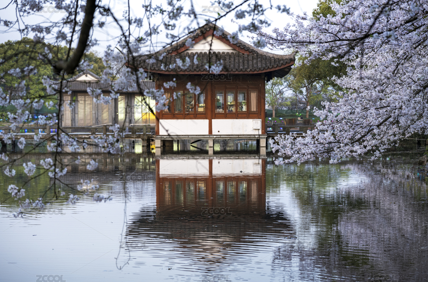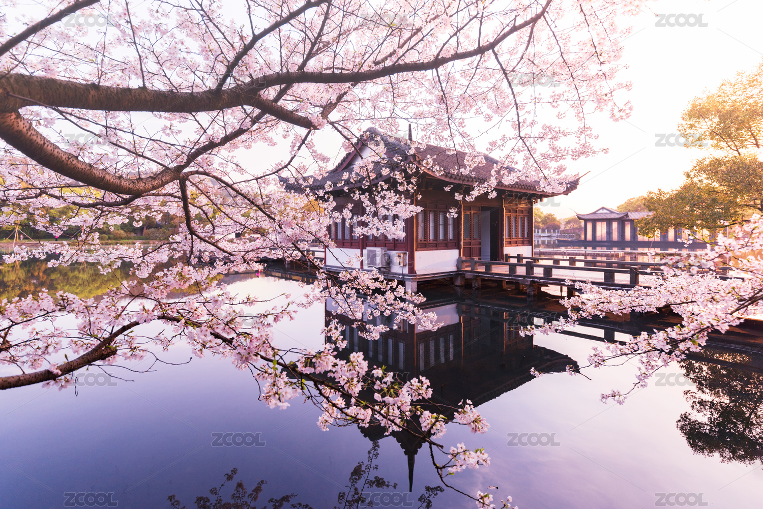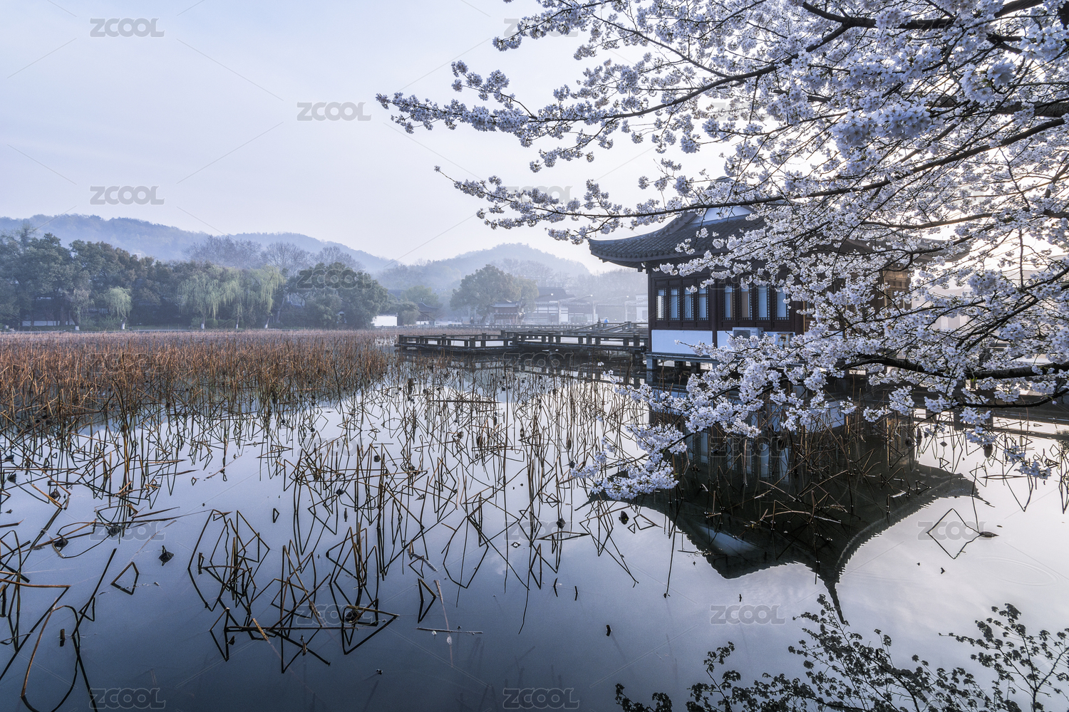 浙江省杭州西湖十景之一曲院风荷春季风光