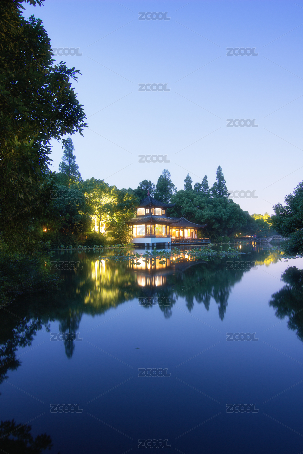 中国浙江省杭州市西湖景区曲院风荷景点风光