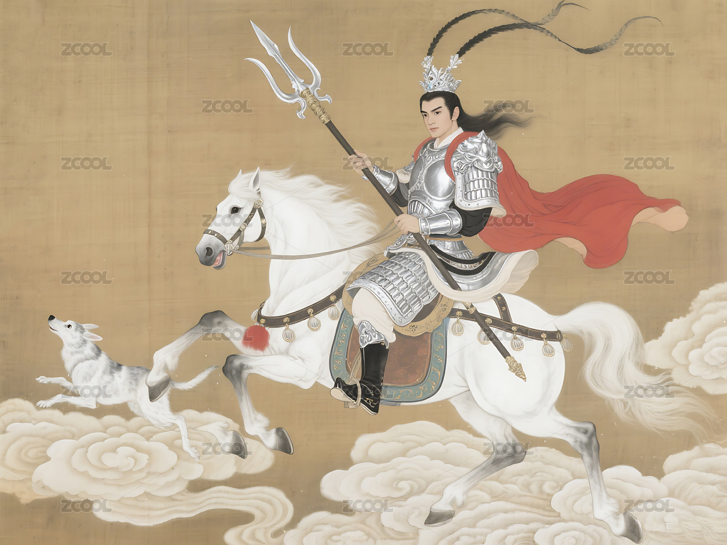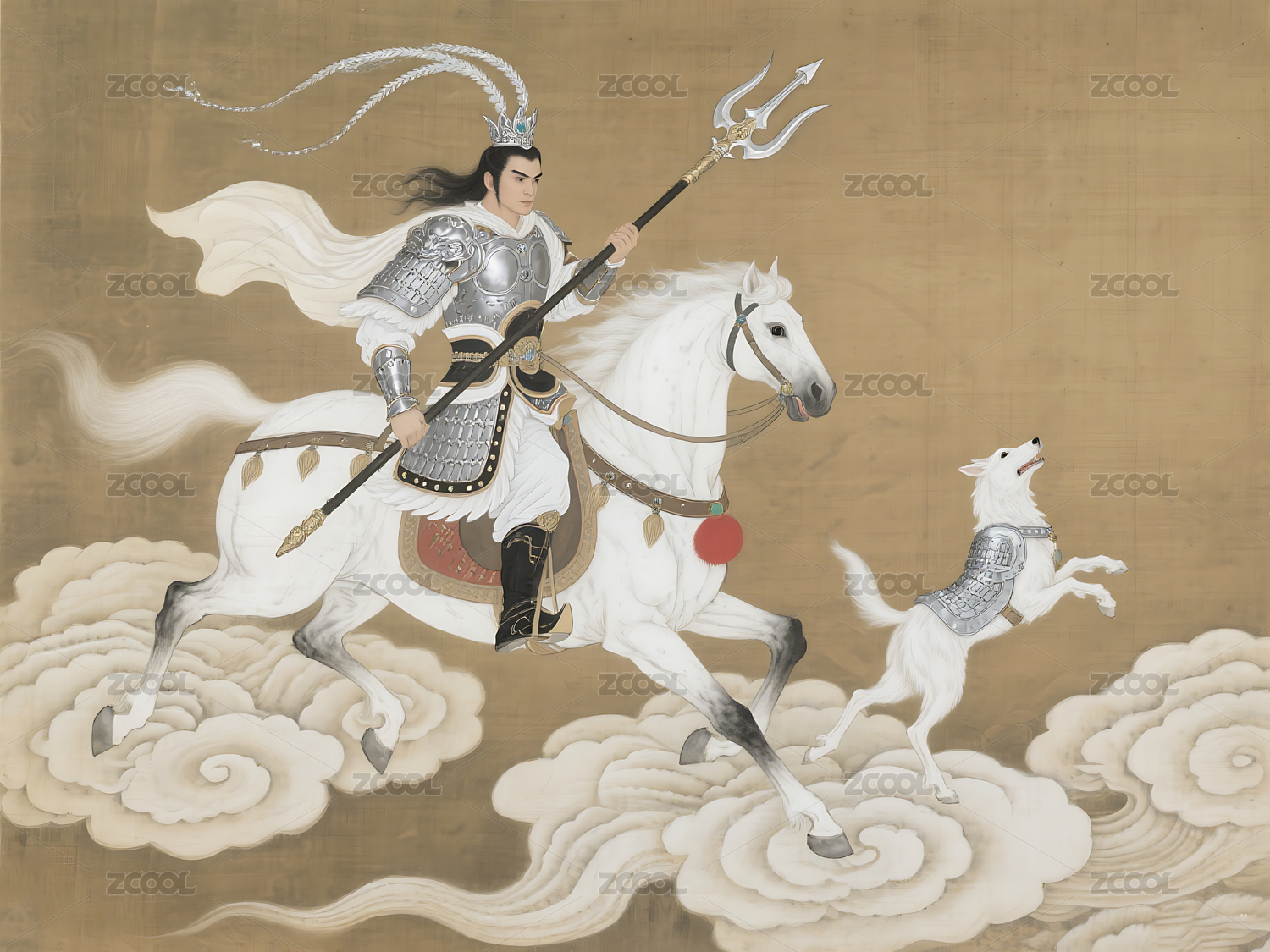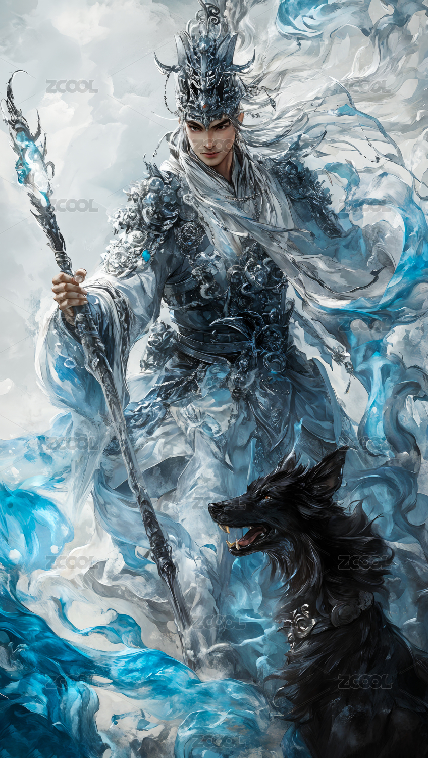 穿着银色铠甲的帅气二郎神