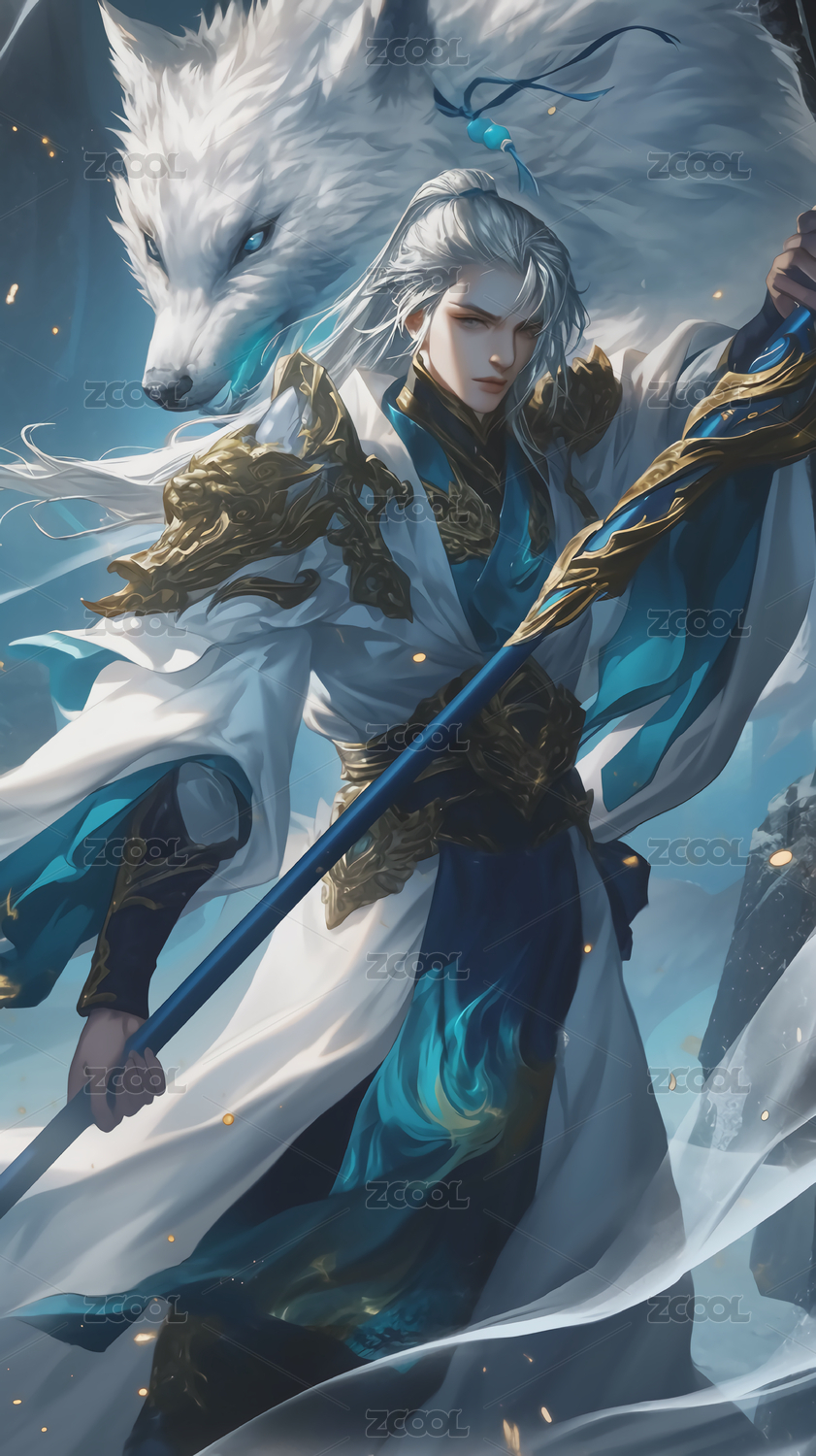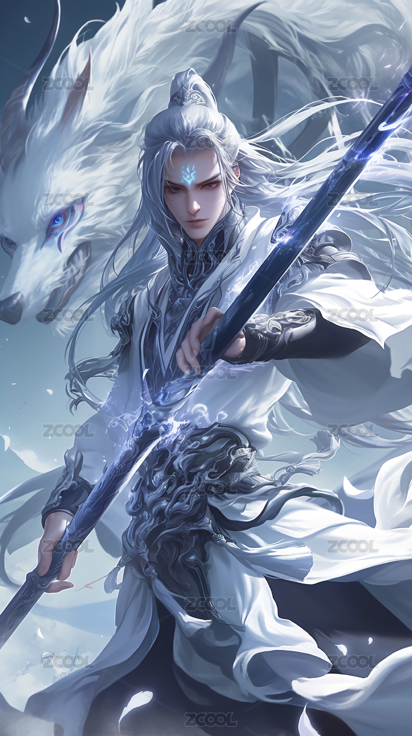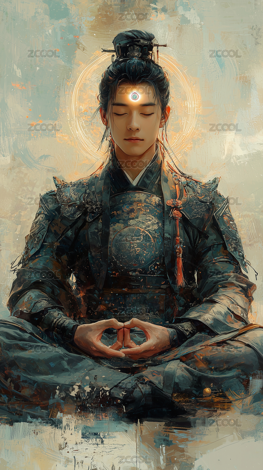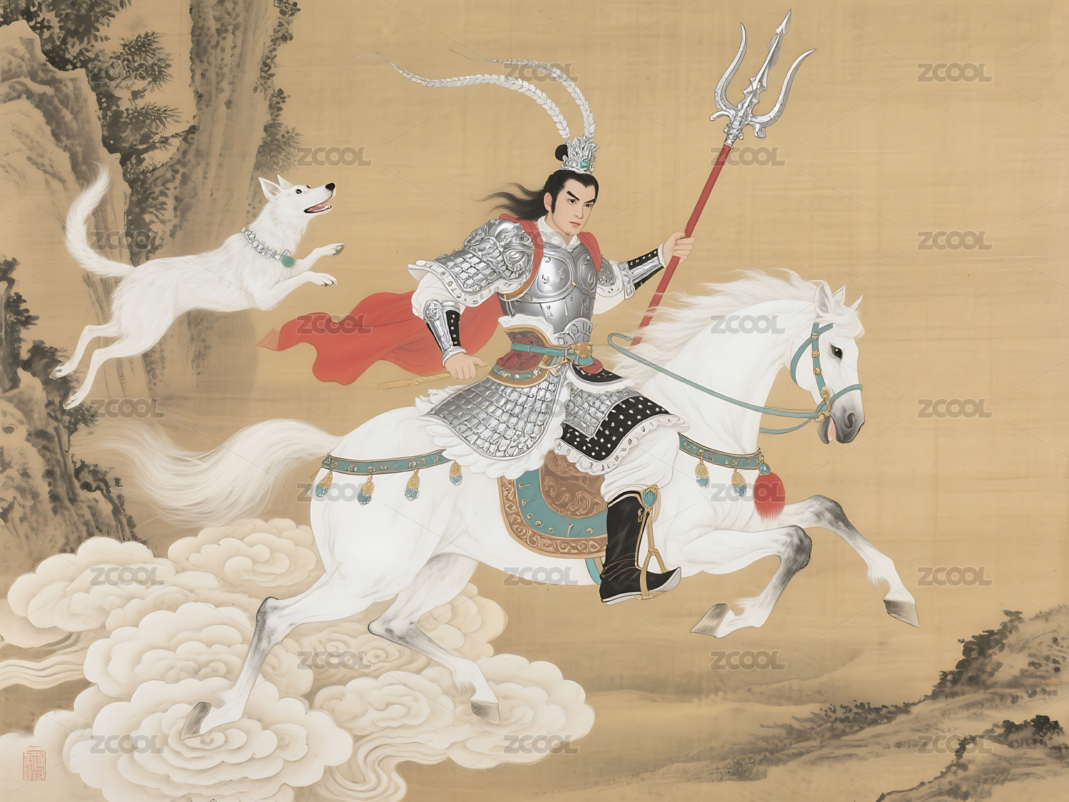 穿着银色铠甲的帅气二郎神