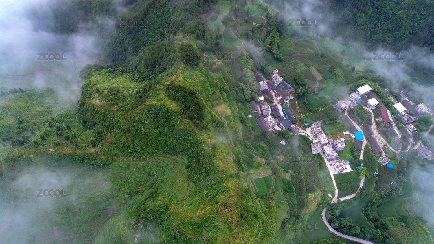 中国安徽绩溪家朋乡云海中的田园风光乡村美景