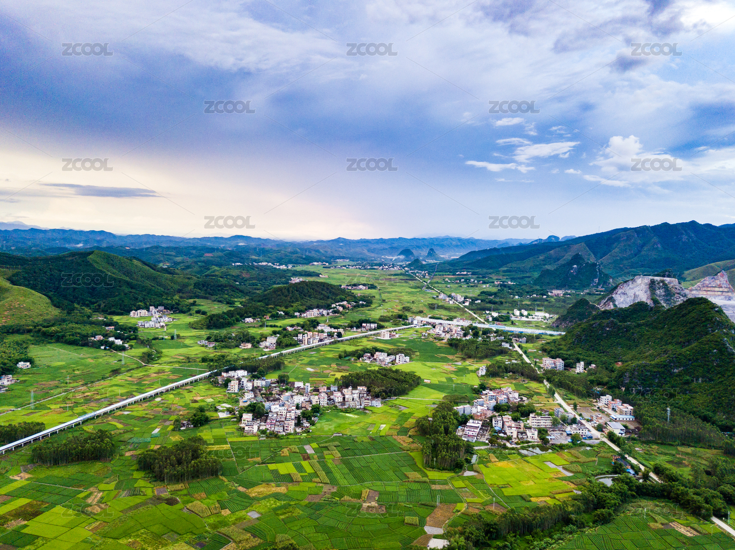 中国广东乡村美景高铁沿途风光