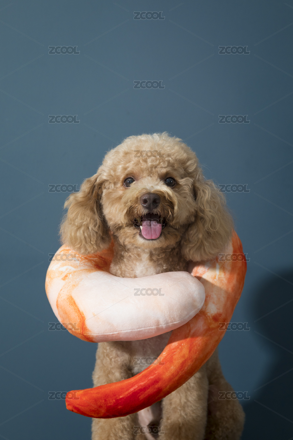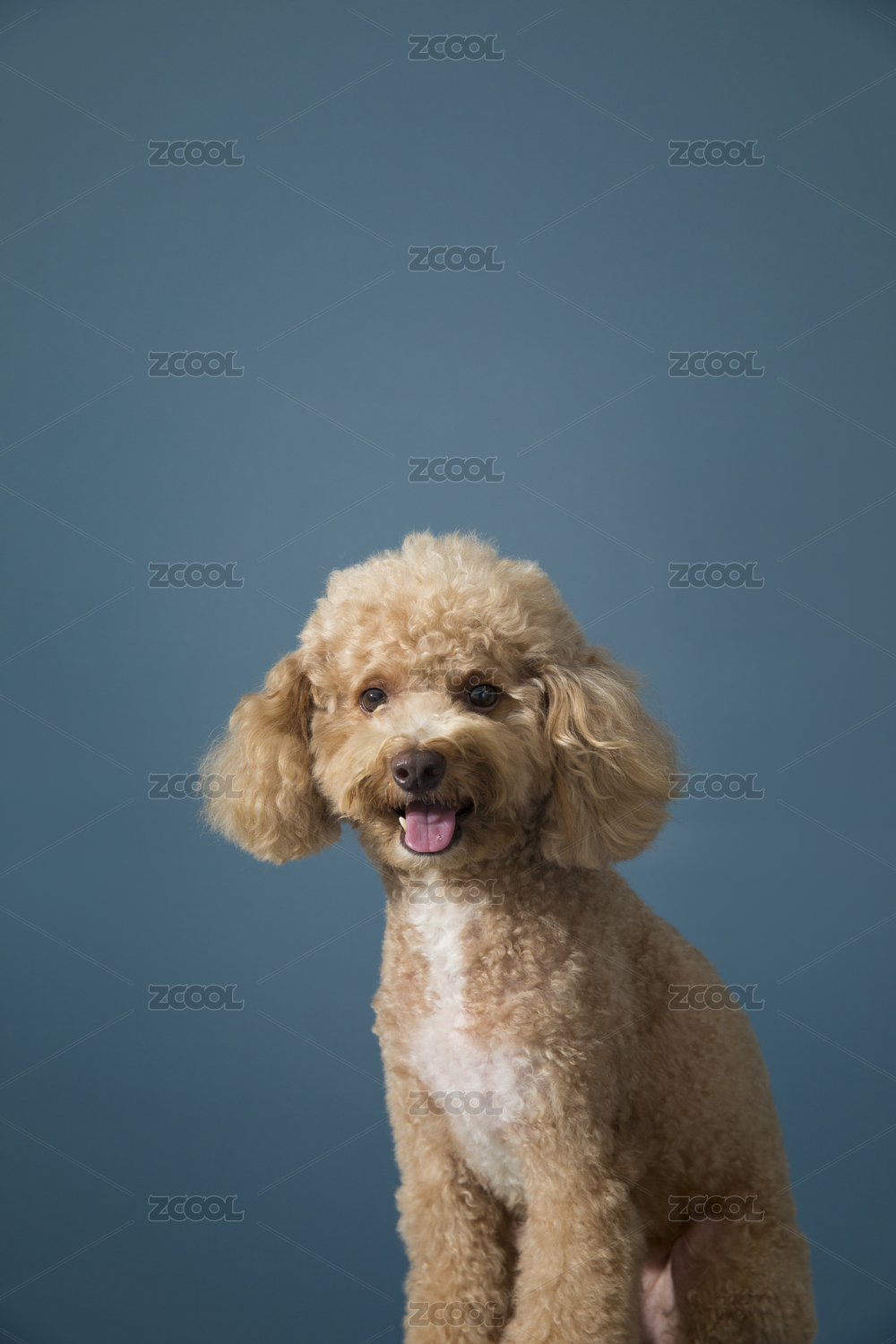 一只带围巾伸舌头的可爱灰色贵宾犬