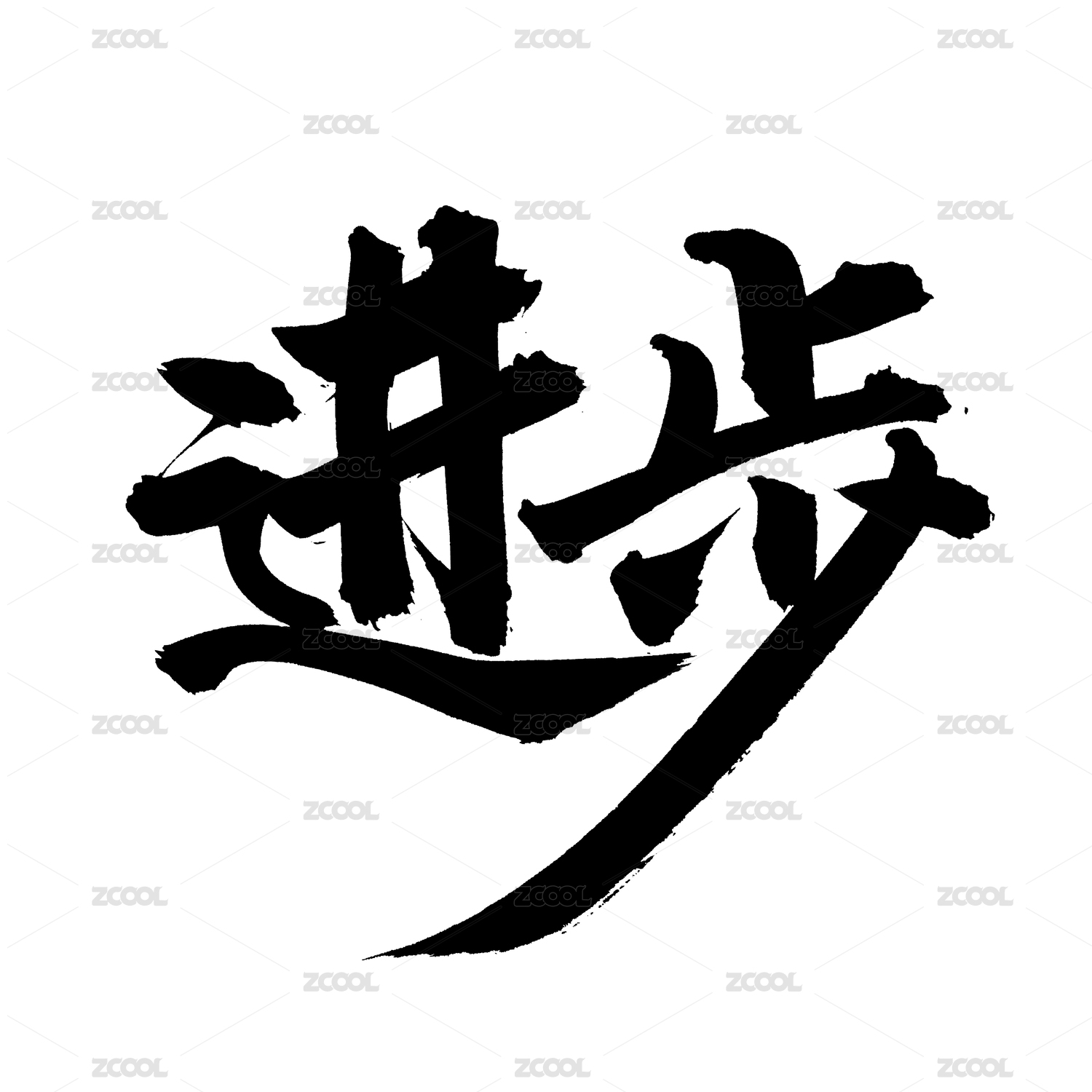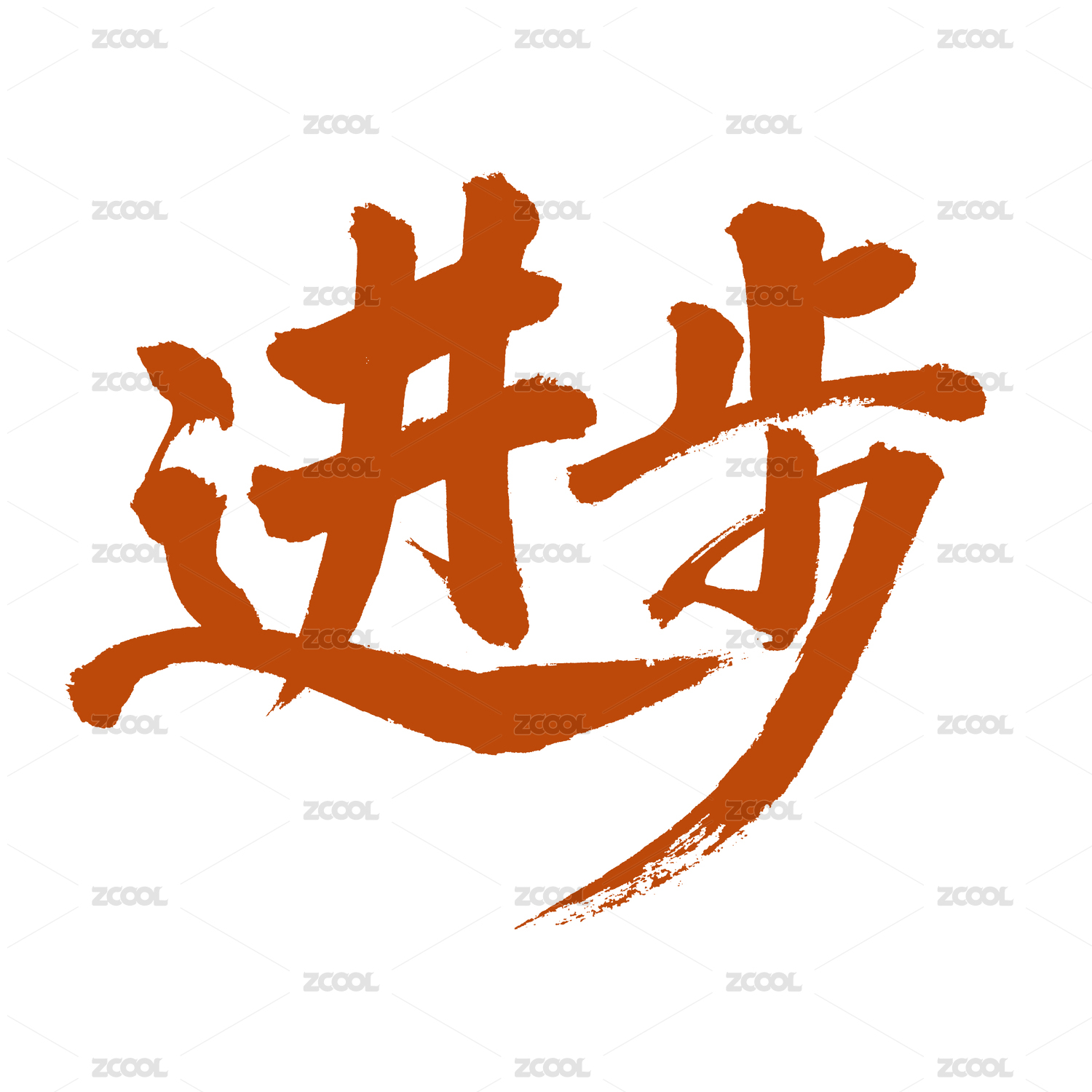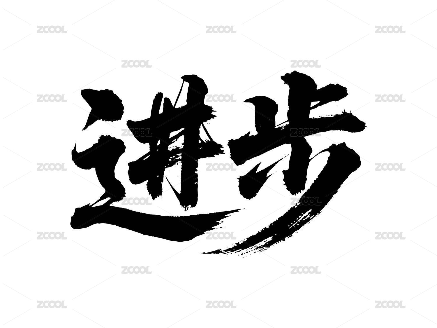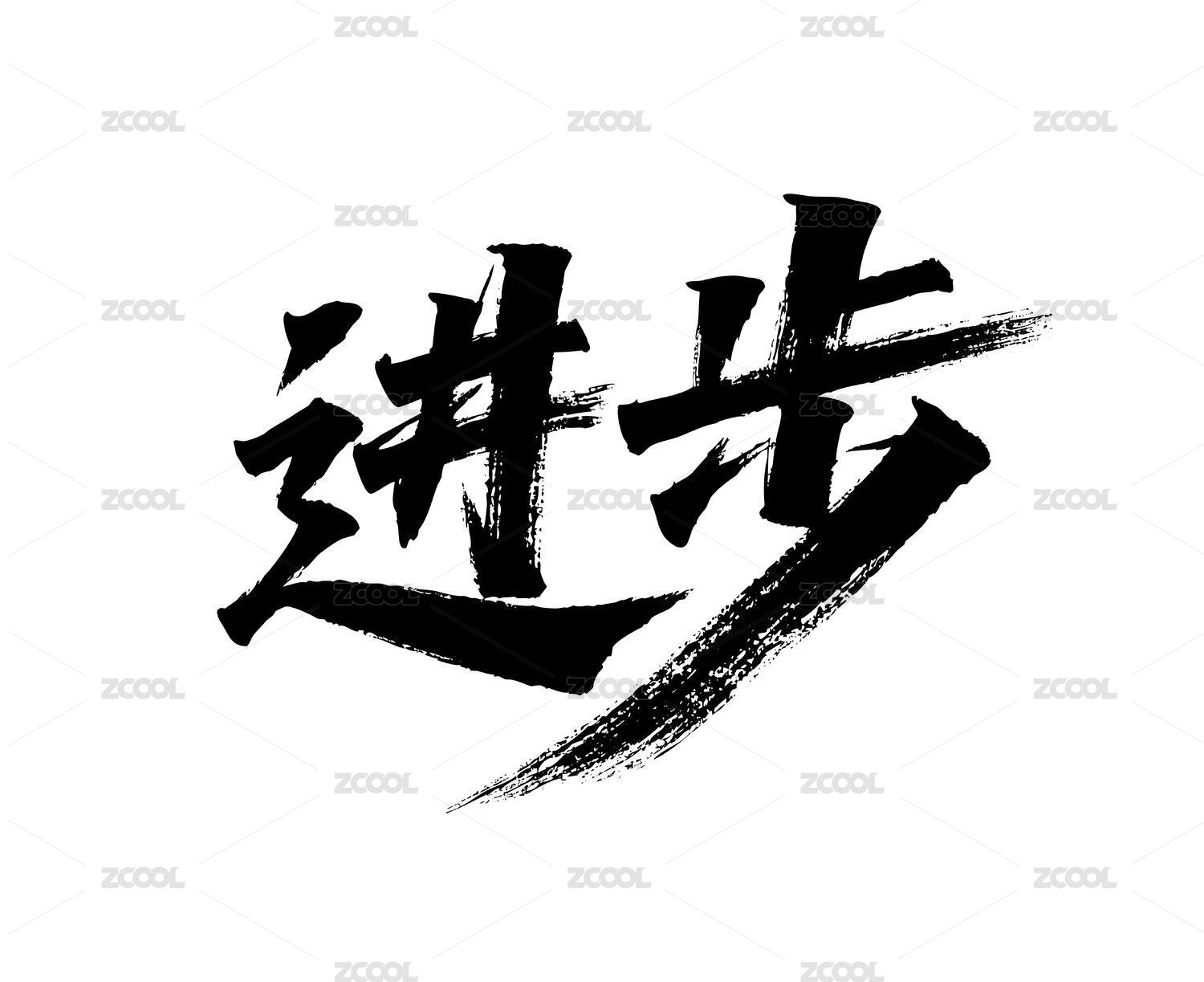 进步矢量书法手写毛笔字