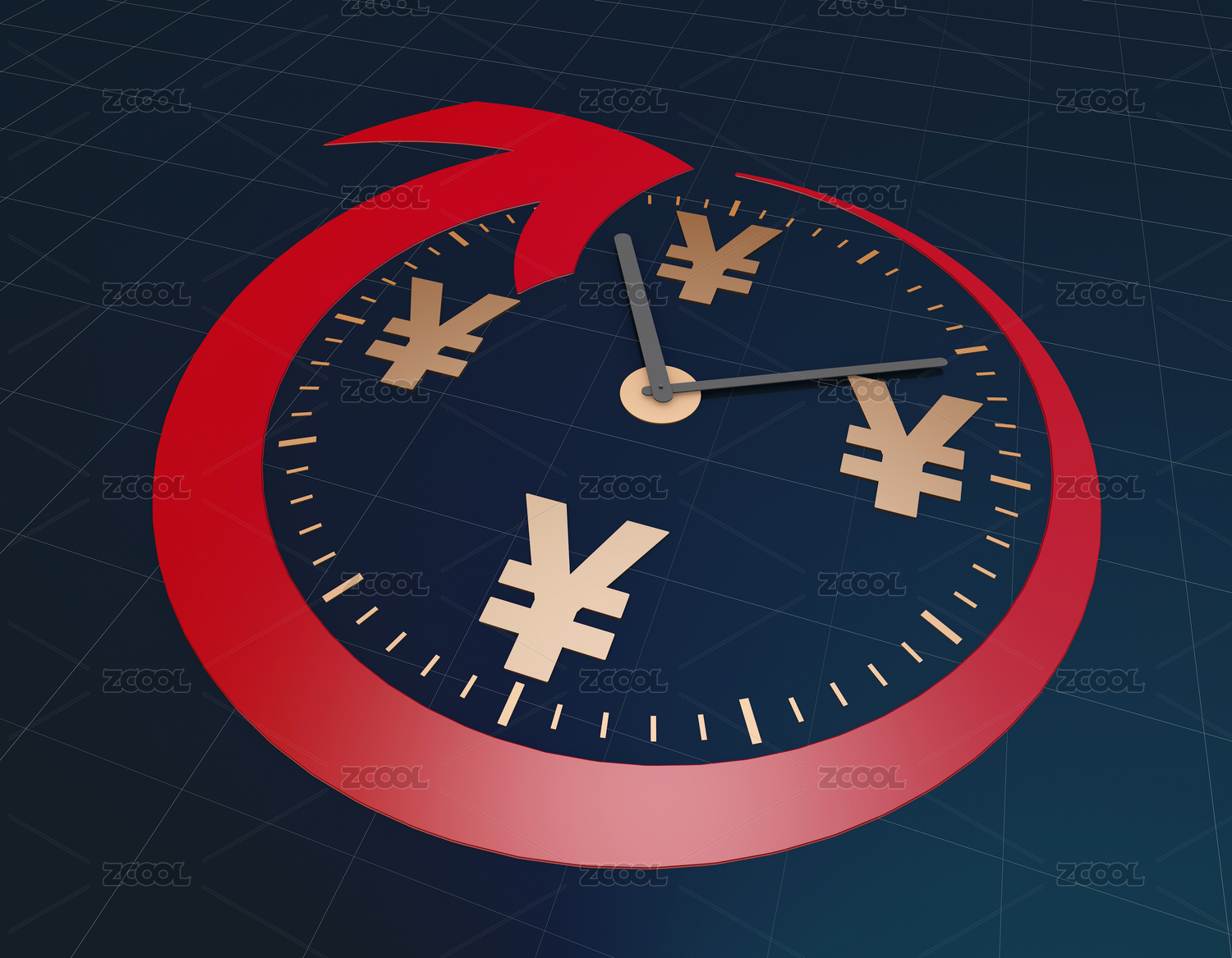 时间和成功箭头,货币符号,人民币符号