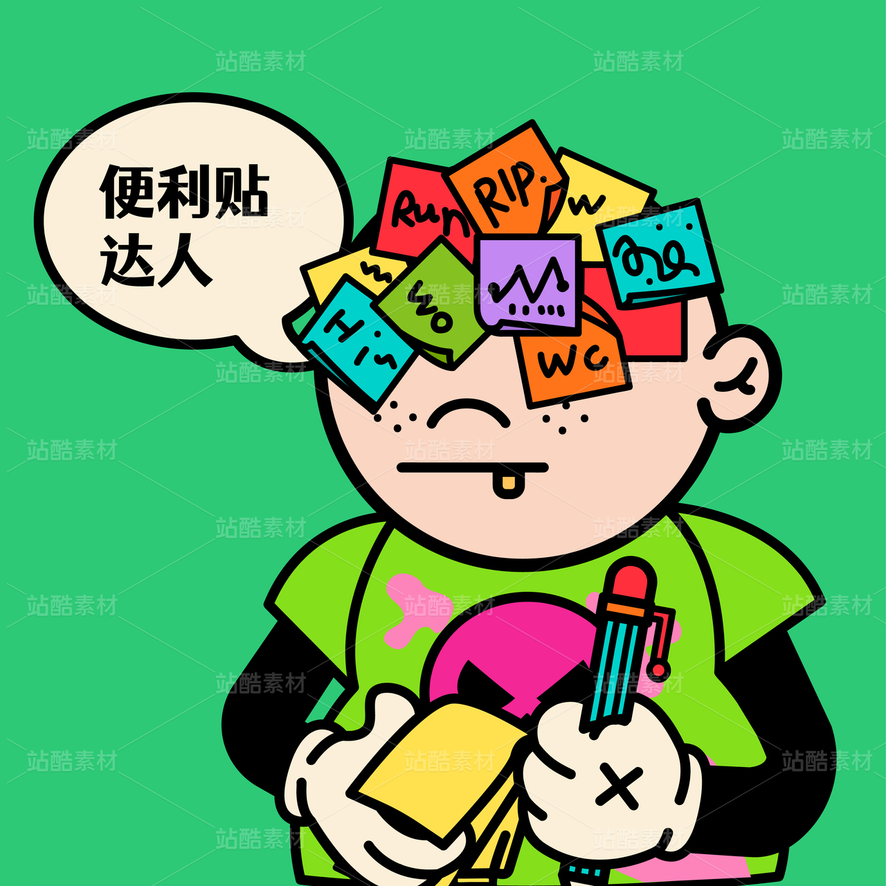 矢量卡通便利贴潮流插画活页笔记本手绘图案