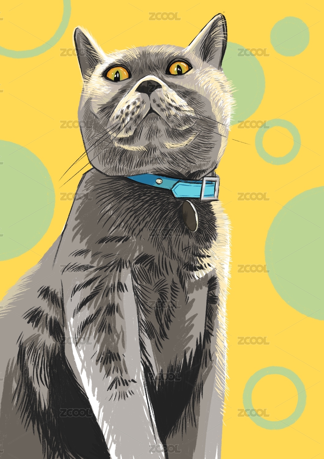 一只俯视着镜头的凶猛英短猫 宠物概念插画